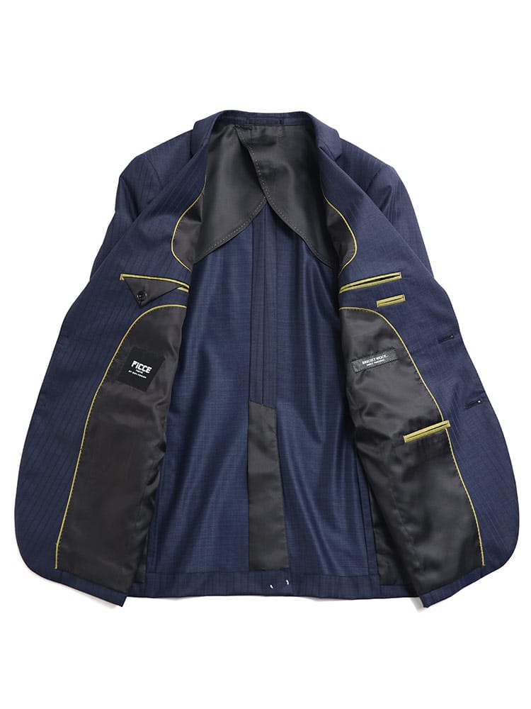 仕様 :ジャケット外側ポケット数×3つ / 内側ポケット数×4つ / パンツポケット数×4つ / ベストポケット数×2つ / シングル2つボタン / 背抜き / センターベント / セッパタイプ / 額縁あり / ノータック / ベスト付き