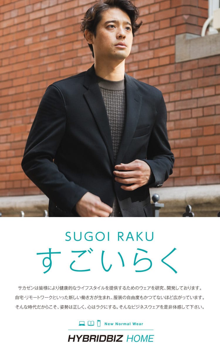 「ハイブリッドビズ (HYBRIDBIZ)」は、スタイリッシュでありながら、ビジネスウェア特有の窮屈さや動きにくさを解消することを目指したシリーズ。その中でも着心地を重視した、従来の商品より2倍伸びる「すごいらく」シリーズです。
