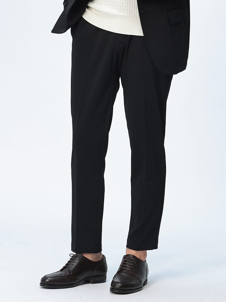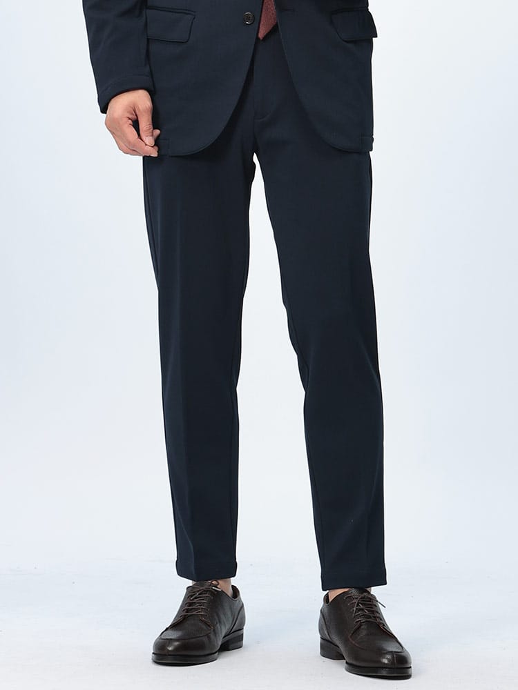 一日中快適に過ごせる、革新的なビジネススラックス。HYBRIDBIZの「すごいらく」シリーズから、驚きのストレッチ性を実現したノータックのスラックスです。従来のスラックスの概念を覆すほどの伸縮性で、まるで穿いていることを忘れるような快適な履き心地。ウエストはサイドゴム仕様で、一日中締め付け感なく過ごせます。