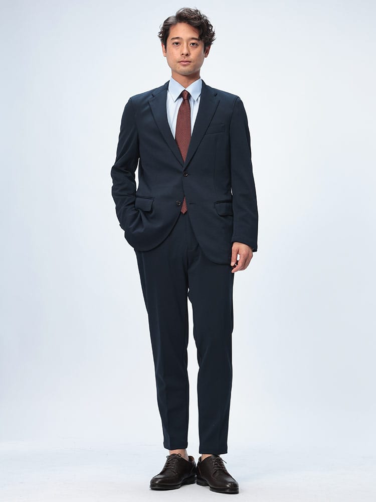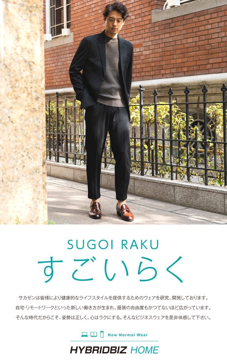「ハイブリッドビズ (HYBRIDBIZ)」は、スタイリッシュでありながら、ビジネスウェア特有の窮屈さや動きにくさを解消することを目指したシリーズ。その中でも着心地を重視した、従来の商品より2倍伸びる「すごいらく」シリーズです。