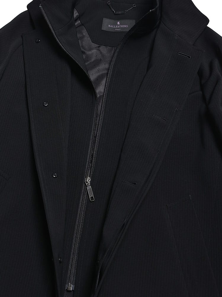 撥水加工のストライプスタンドフルジップコート。ビジネスコートとしても普段使いとしても最適なアイテムです。スタイリッシュかつスマートなデザインで、どんなシーンでもおしゃれに着こなせます。このコートは撥水加工が施されており、雨の日でも安心して着用できます。さらに、保温性に優れたライナーベストが付属しているので、寒い季節でも暖かさをキープします。高品質の材料と丁寧な縫製で作られており、長い間愛用いただけます。ライナーベストを取り外せば春先まで使えロングシーズン使用可能です。スタイルと機能性を兼ね備えたこのコートは、あなたのファッションスタイルをさらに引き立て、快適な着心地を提供します。