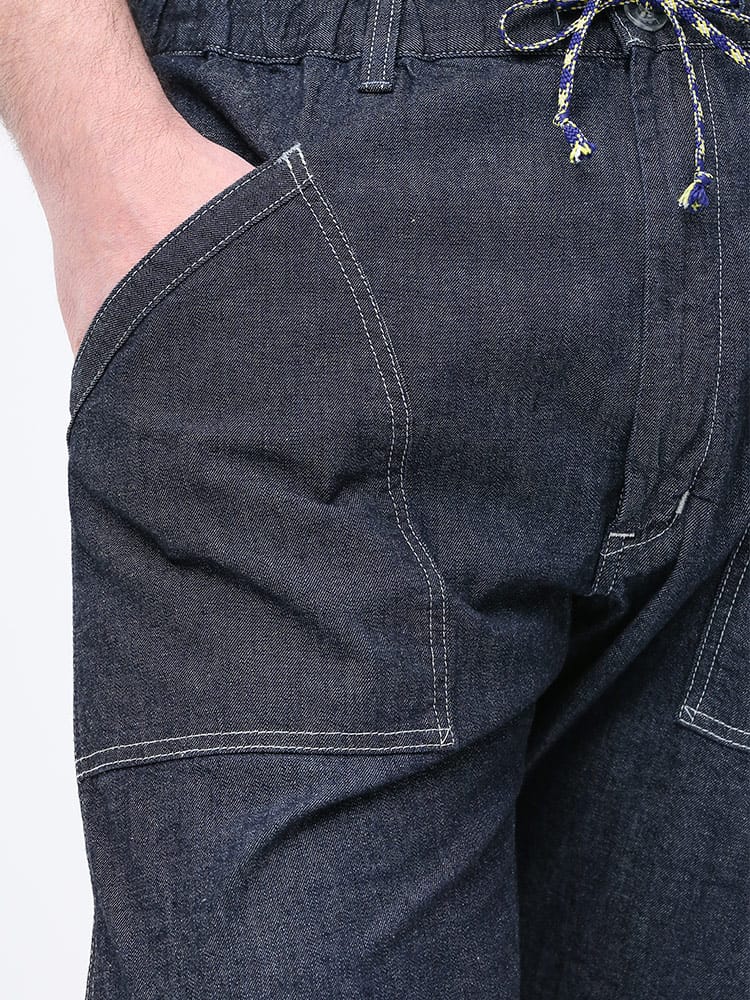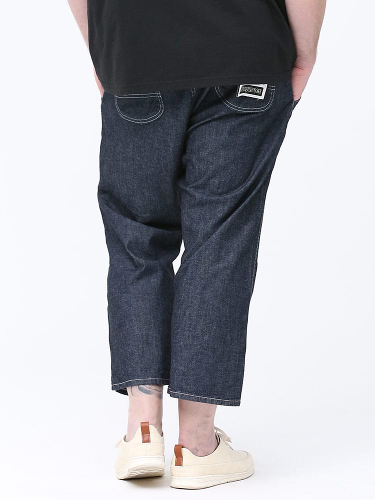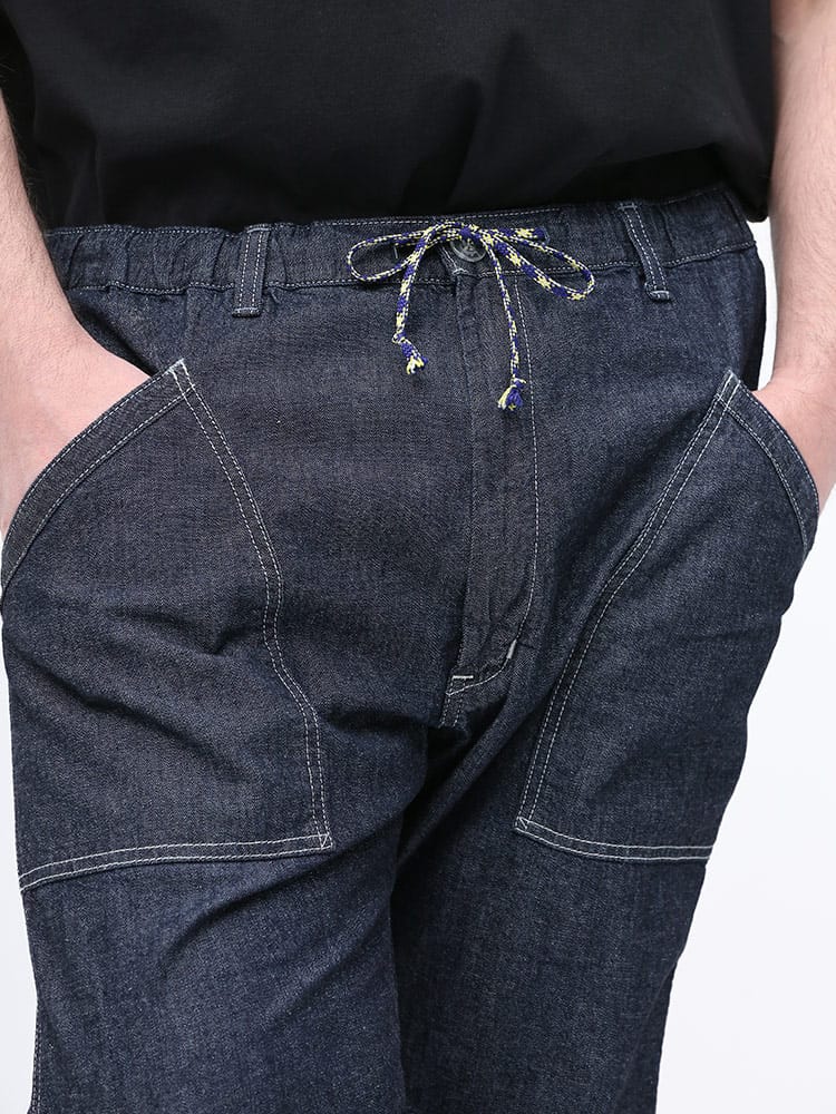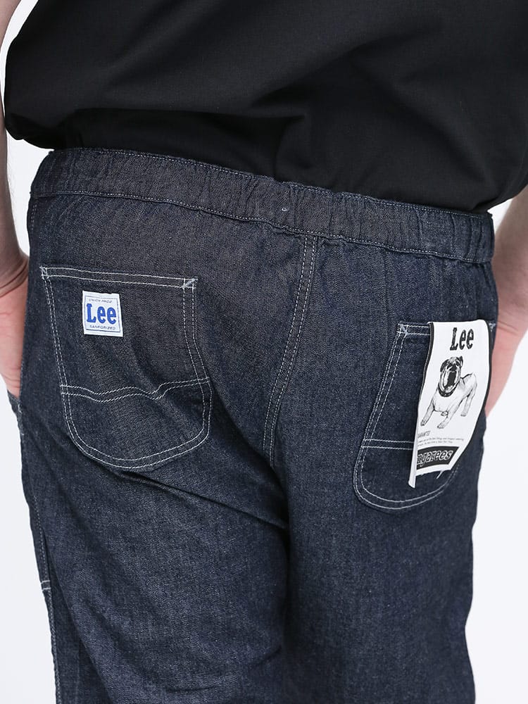 ワークスタイルやアメカジスタイルにおすすめのLeeのデニム ウエストコード ジップフライ イージーパンツです。バック左ポケットに白タグ。フロントのポケットデザインがポイントです。ウエストはドローコード付きでサイズ調整が出来ます。