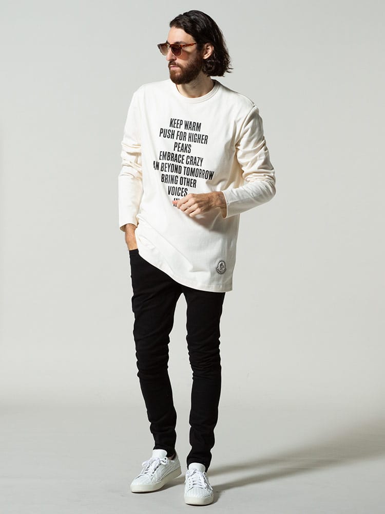 MONCLER (モンクレール) メッセージプリント クルーネック 長袖 Tシャツ MC8D000128390T