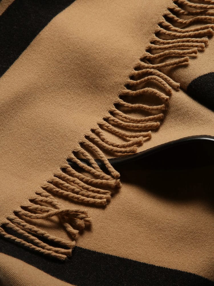 ・ウール100%で仕上げたライン ポンチョ
