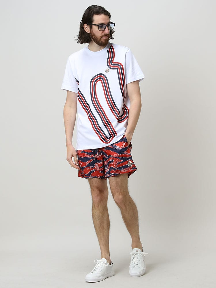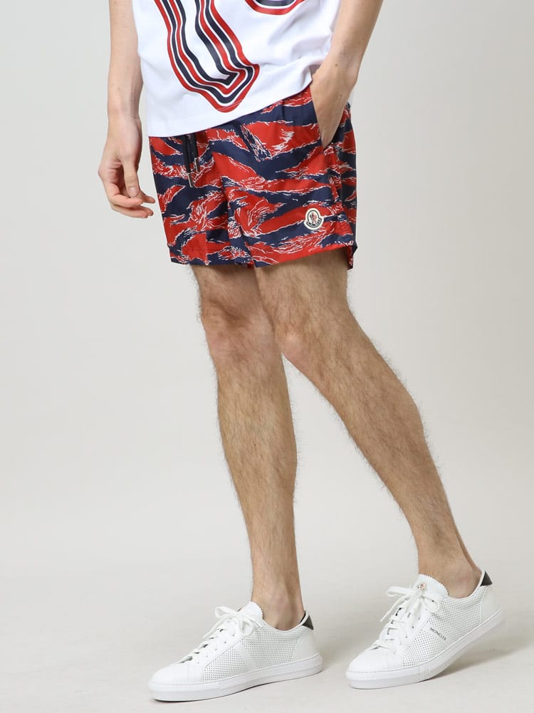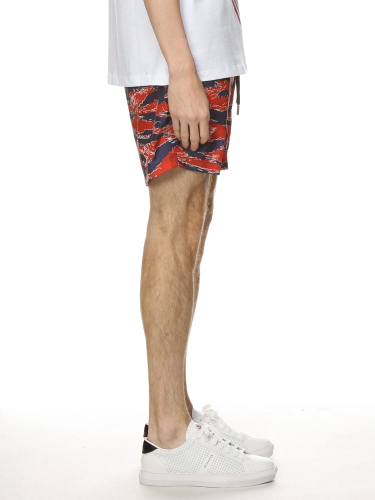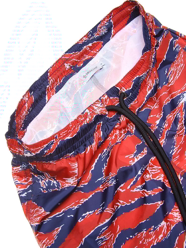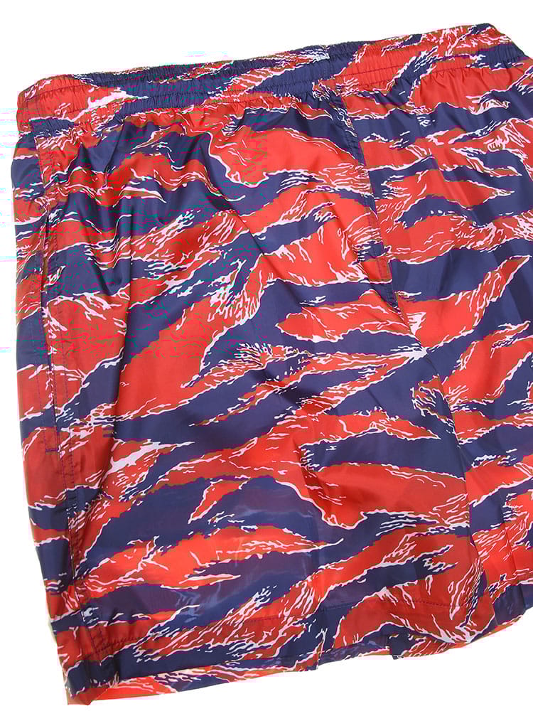 タイムレスなスイムウェアは、ナイロン素材を使用し、タイガー調のプリント入りです。エラスティックなウエストバンドにドローストリング付きで着心地の良いデザインです。