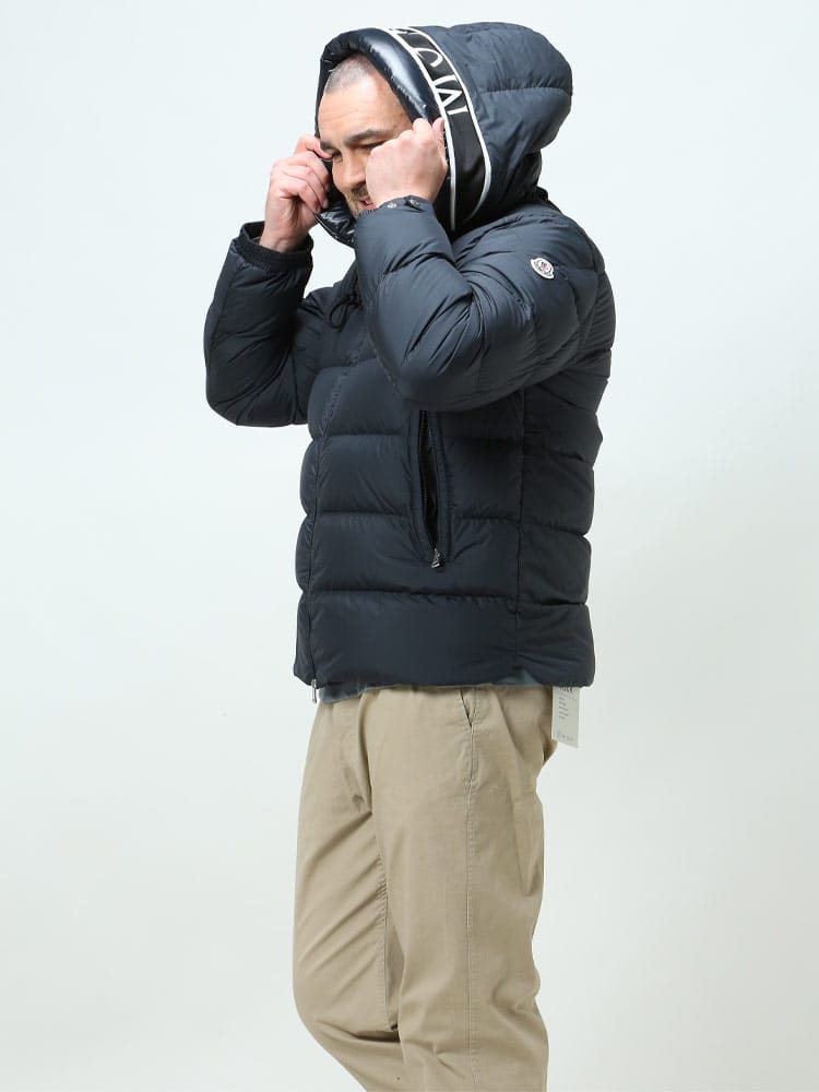 環境に与える影響が低い素材を追及するMonclerの取り組みを象徴した サスティナブル ダウンジャケット Cardere。表地、裏地共にリサイクルポリエステル素材を使用しております。調節可能なフードに大きなロゴがあしらわれたMonclerの定番アイテムです。フードの大きなロゴが目を惹きますが、フードのジップを閉じれば非常にシンプルなデザインへ。シーンや年代に併せてデザインを変更でき、長くお使いいただけますので既にMonclerをお持ちの方、初めてMonclerをお持ちいただく方にも非常におすすめのアイテムです。レギュラーフィットですので、普段のサイズでお選びくださいませ。( スタッフS )
