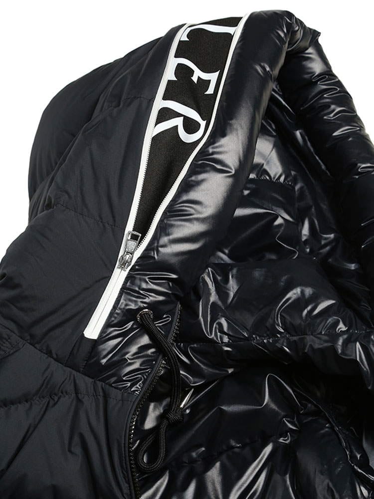 ・リサイクルのマットなポリエステル素材を使用・裏地にリイクルの光沢があるポリエステル素材・ダウンフィリング・ドローストリングで調節可能なフード、スコマー、ロゴレタリングが付いてジッパーでクローズ・ジッパークローズ・表側と内側にジッパー付ポケット