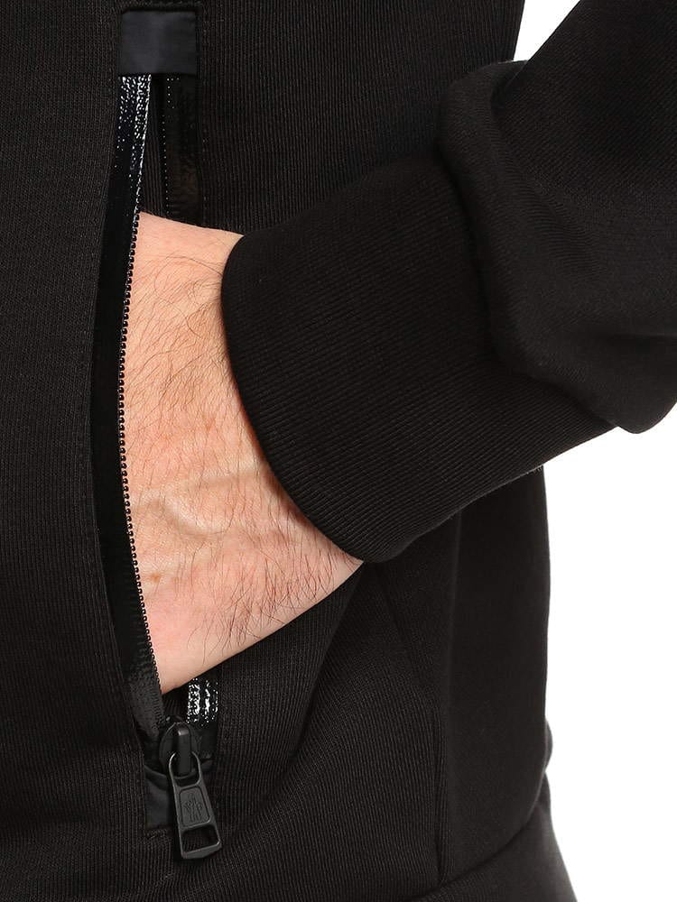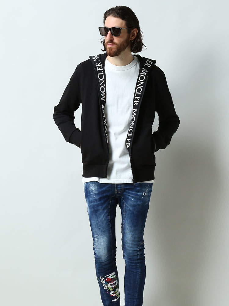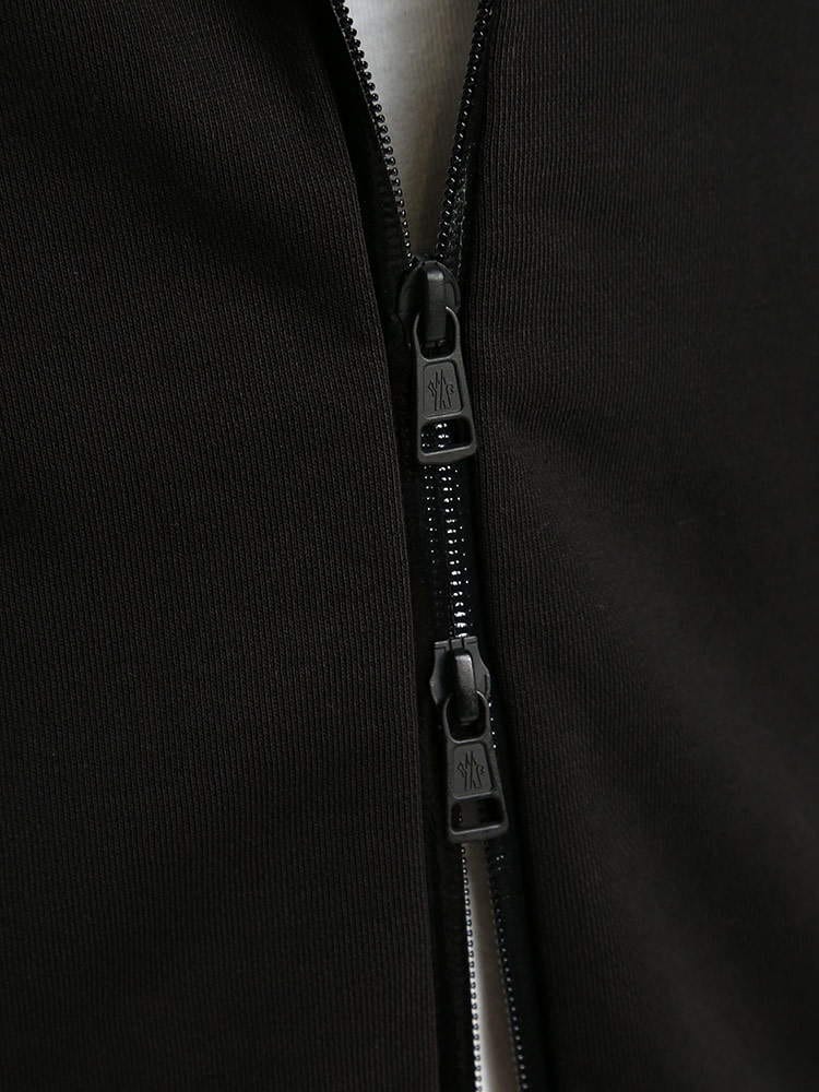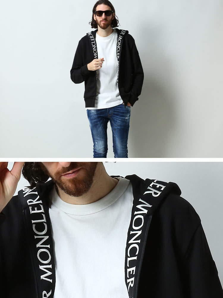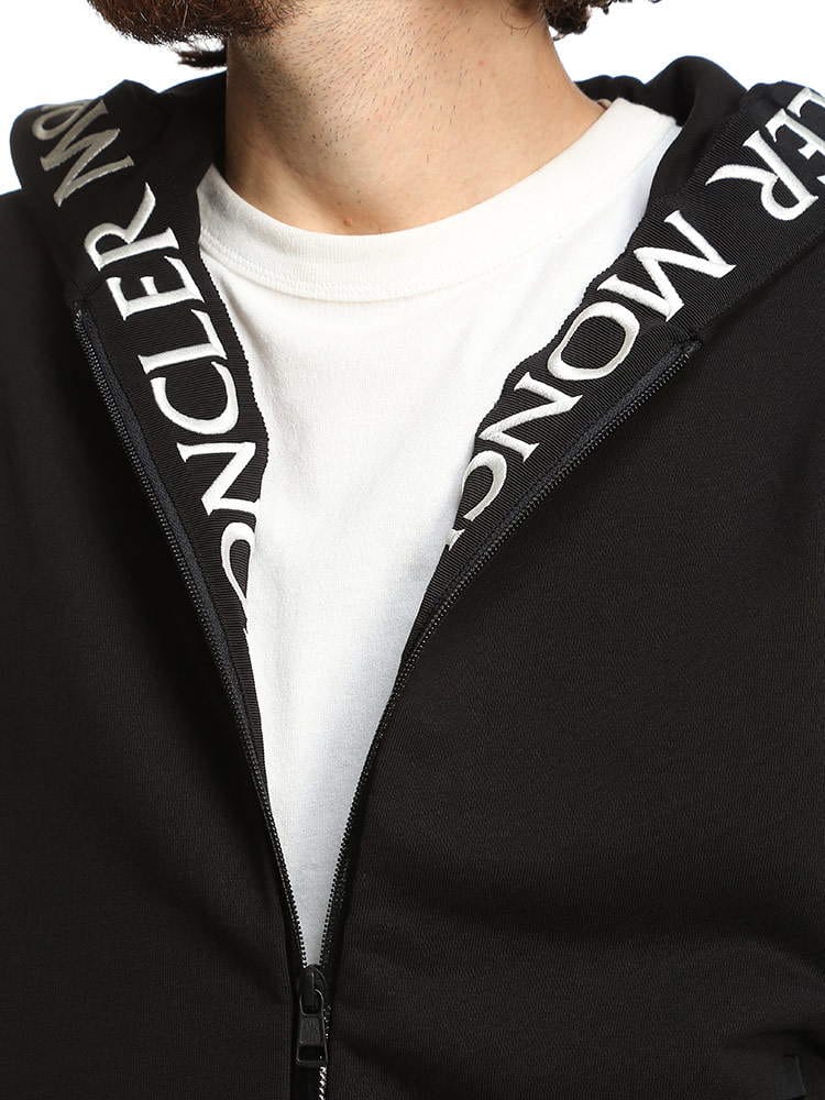 心地よい肌触りのコットンフリース素材を使用したフード付スウェットシャツ。フロントからフードの縁に沿って「Moncler」レタリング刺繍を入れたグログランテープで仕上げています。光沢感のあるジッパークローズポケットもポイント。
