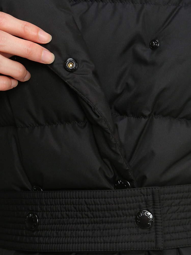 MONCLERではなかなかない、ダブルのスナップボタン留めのロングダウンジャケット。