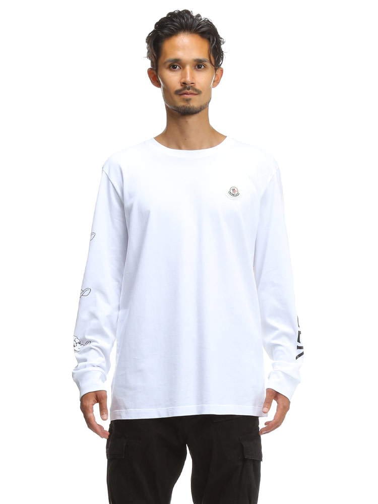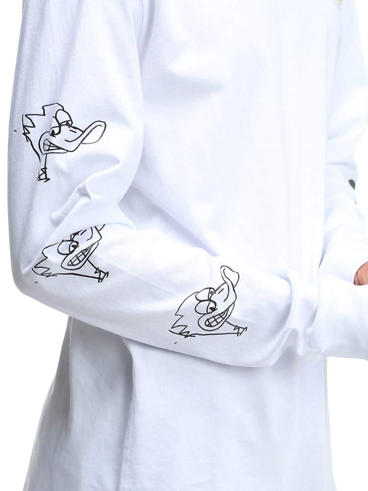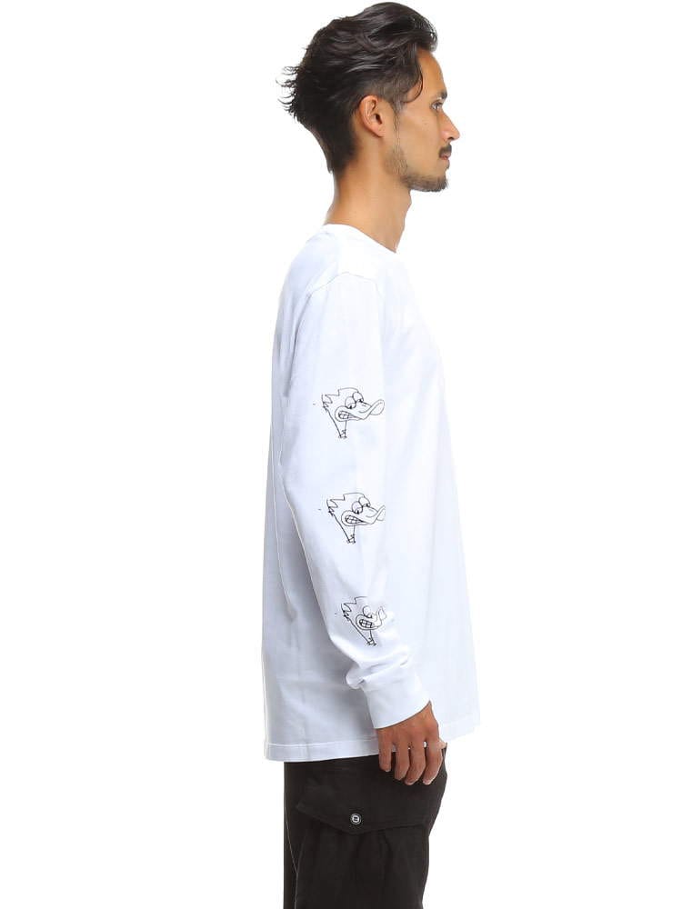 軽量なコットン素材を使用したシンプルなTシャツは、左袖にブランドロゴのプリント、右袖にはブランドマスコットのダック模様がプリントされています。