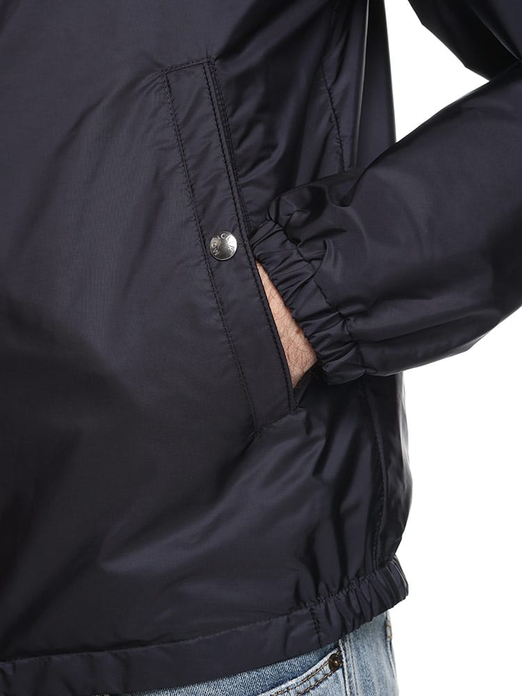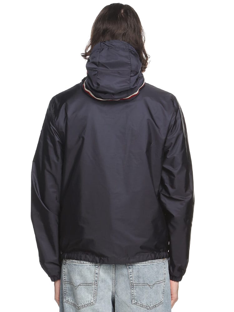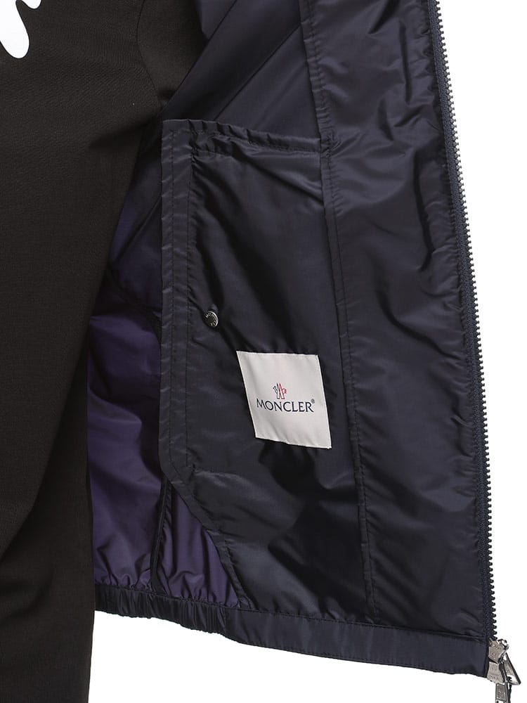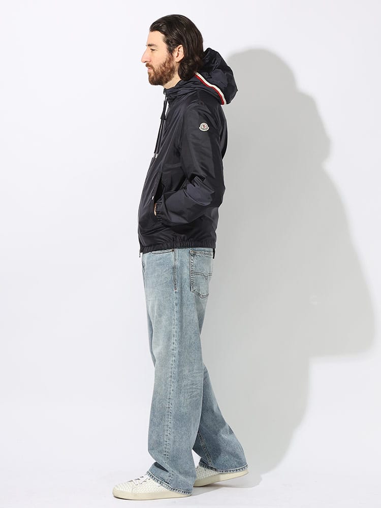 ボートの世界から着想を得たGrimpeursジャケットは、撥水性ナイロン素材を使用しています。海をイメージしたカラーパレットのジャケットは、フードにトリコロールカラーのリボンをあしらい、Monclerの伝統に敬意を表しています。