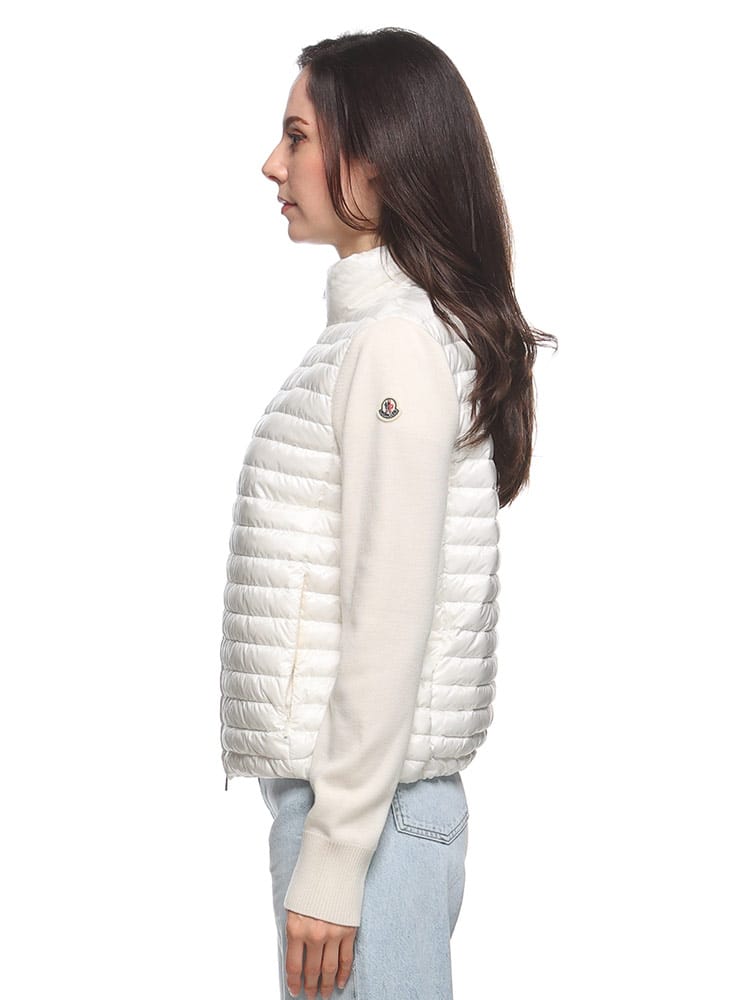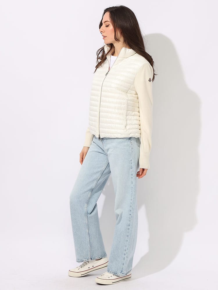 Monclerの定番デザインであるこのカーディガンは、天候が良い時は1枚で、気温が低いときはジャケットやコートの下に重ねて着ることができます。ウール素材を使用したカーディガンは、前面がダウンパディング入りで、保温性と保護性を兼ね備えています。極細ウール素材と光沢のある薄手ナイロン素材を使用。光沢のある薄手ナイロン素材の裏地。ダウンパディング入り。平織ニット。ゲージ14。ジッパーでクローズ。ジッパー付ポケット。