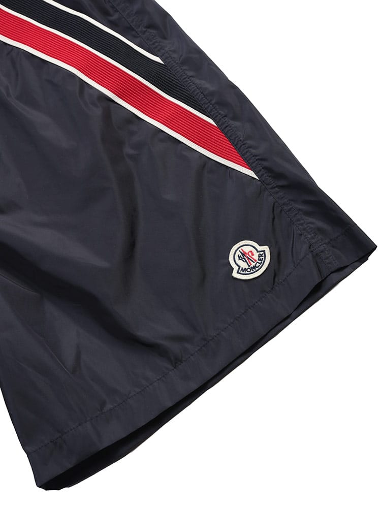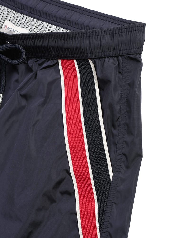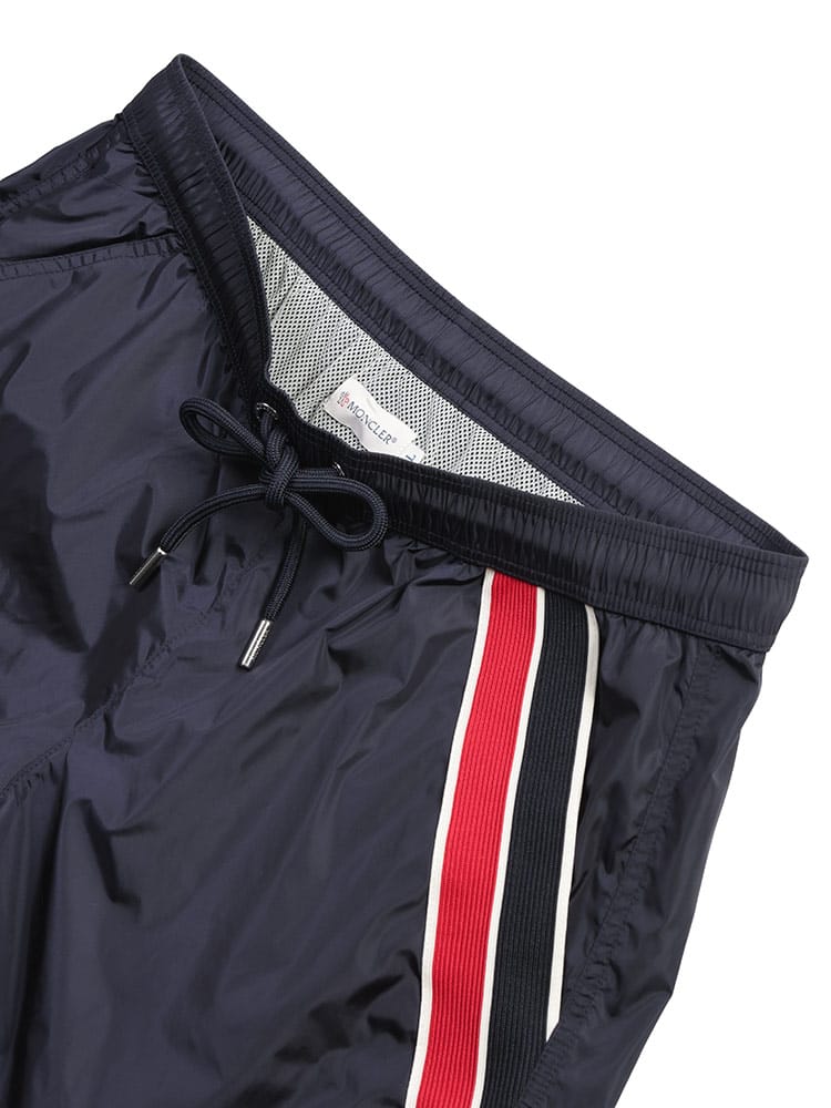 サイドにあしらわれたアイコニックなトリコロールラインが際立つ、スポーティかつエレガントな一枚です。軽量で速乾性に優れたナイロン素材を使用し、メッシュライニング付きで快適な履き心地。