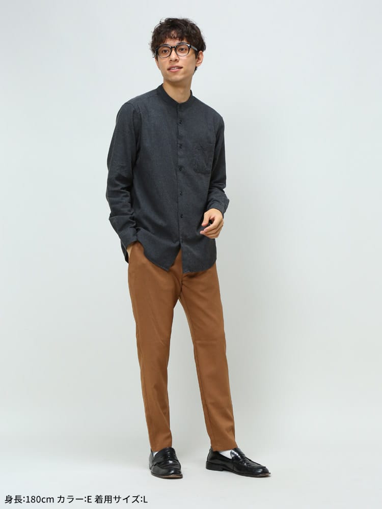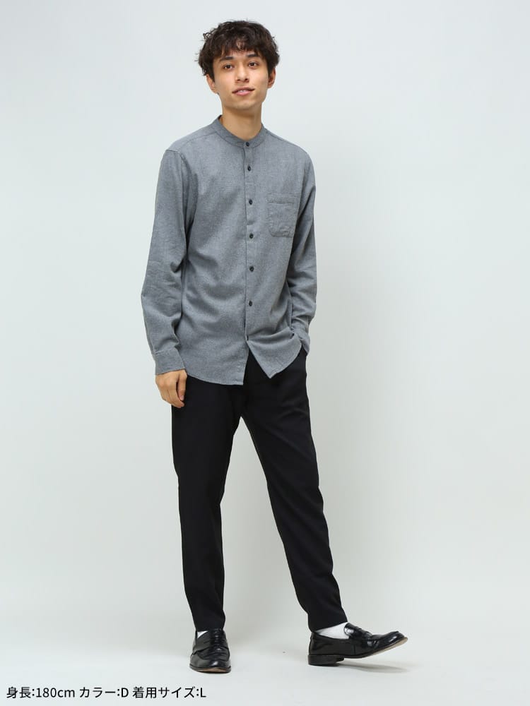 バンドカラーがポイントになったネルシャツの登場です。ベーシックなデザインでチェック柄がお洒落なアイテム。首元はバンドカラーで上品さをプラス。左胸にはポケット付き。肌触りの良いコットン生地で仕上げました。デニムと合わせたり、スラックスと合わせたりと幅広いスタイルをお楽しみいただけます。