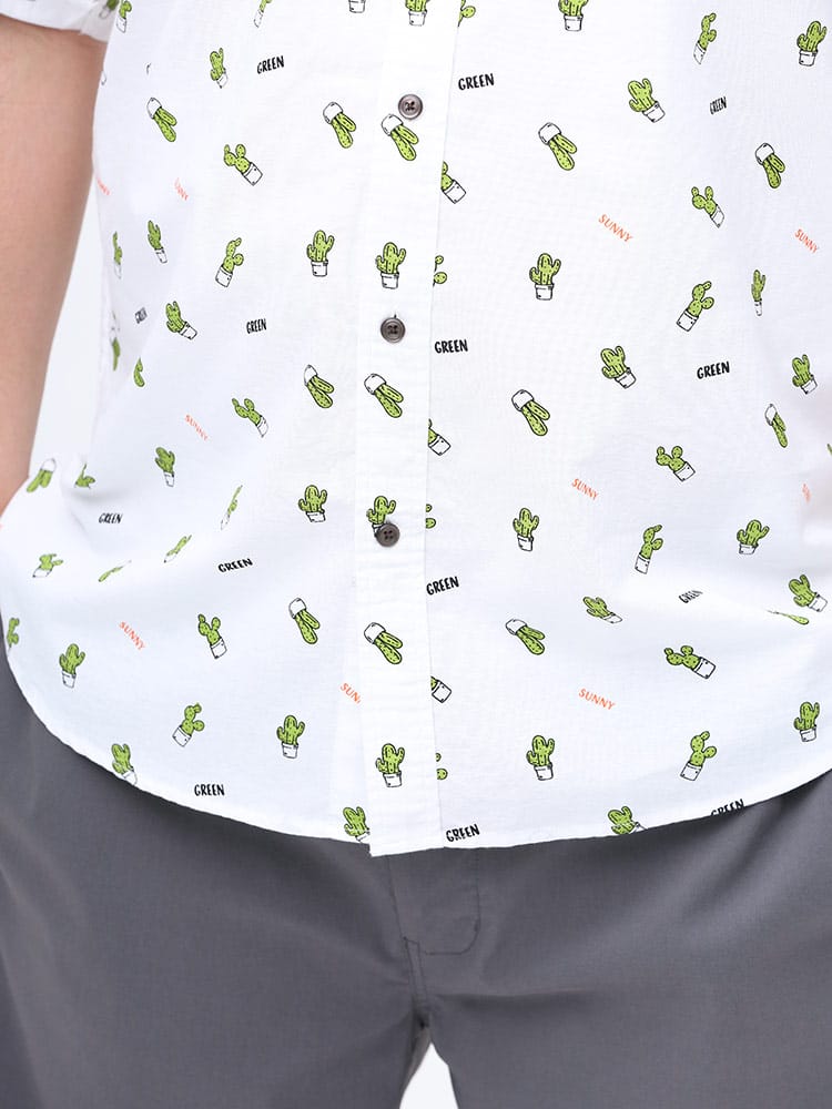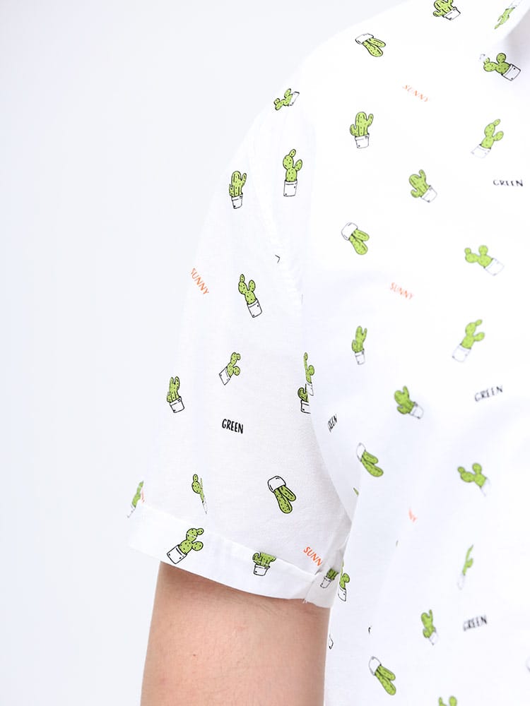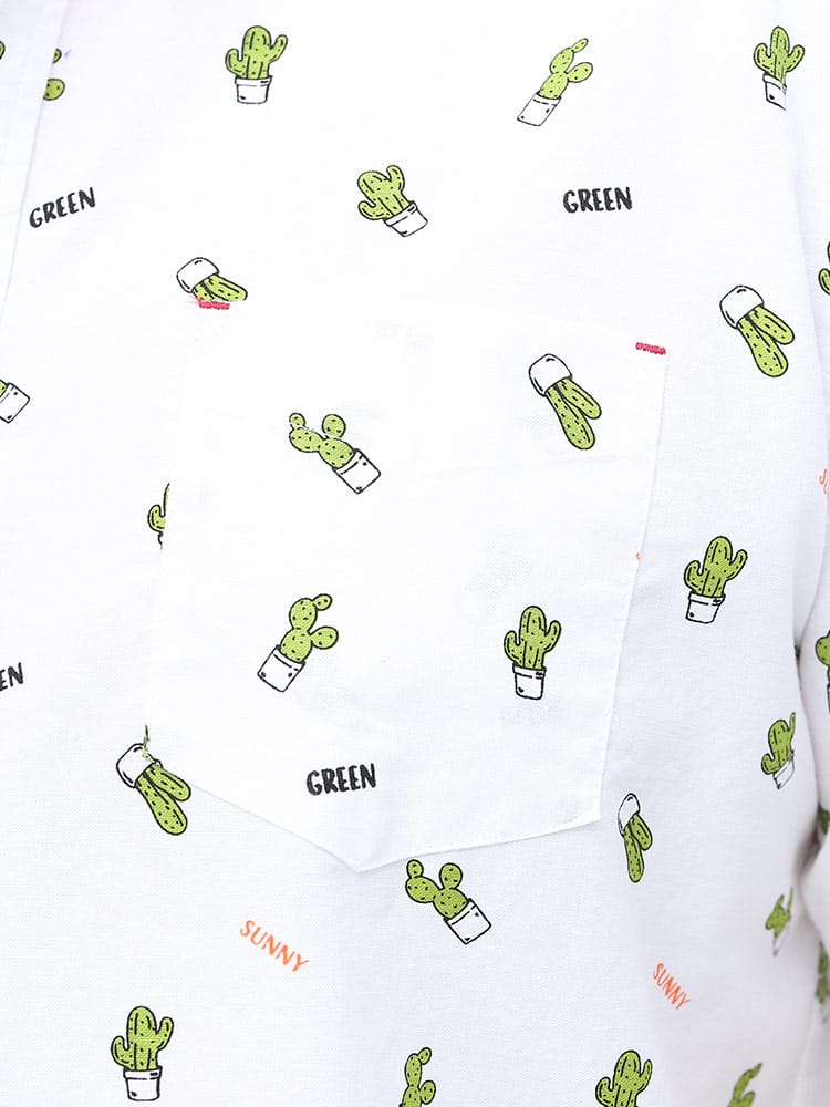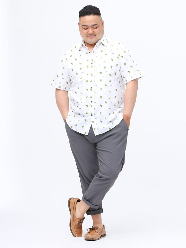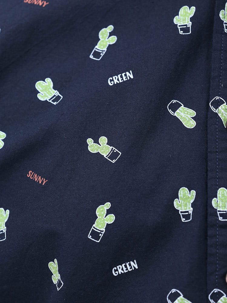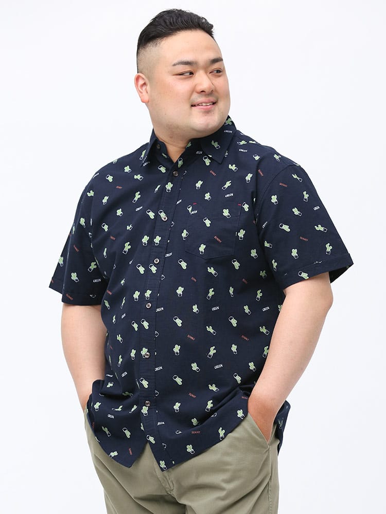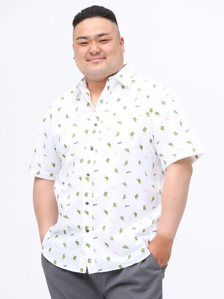 サボテン柄がポップなデザインのポケット 半袖 オックスシャツです。左胸のポケットもポイントです。肌触りの良いコットン生地を使用し、着心地抜群。デザイン性があるアイテムでコーデにアクセントをプラスしてくれる一枚です。