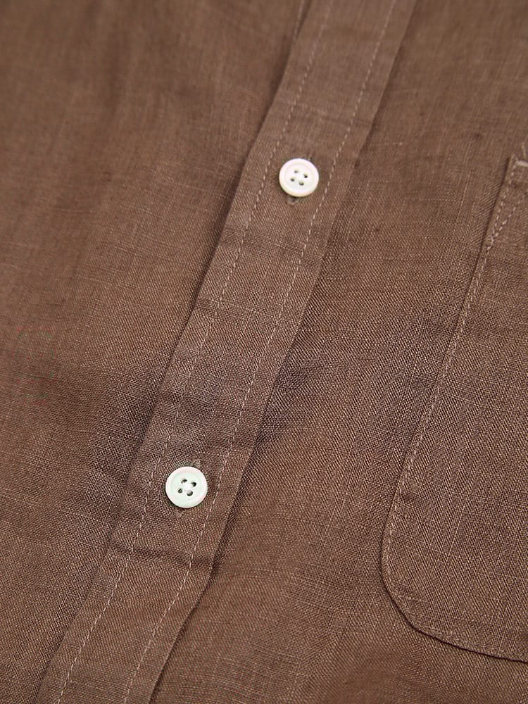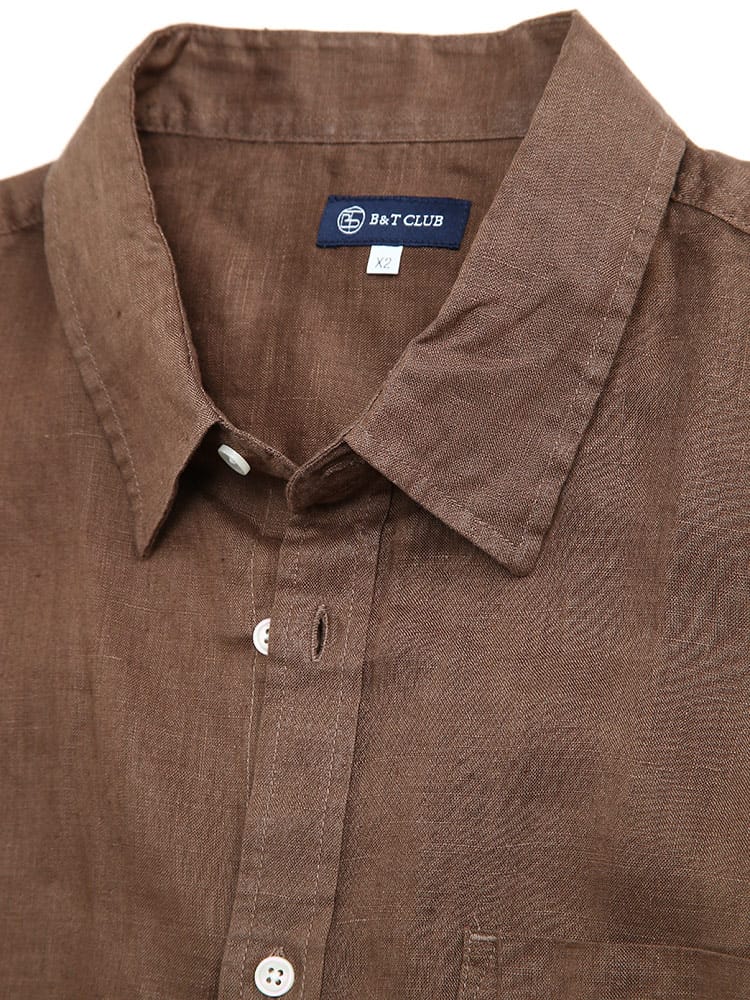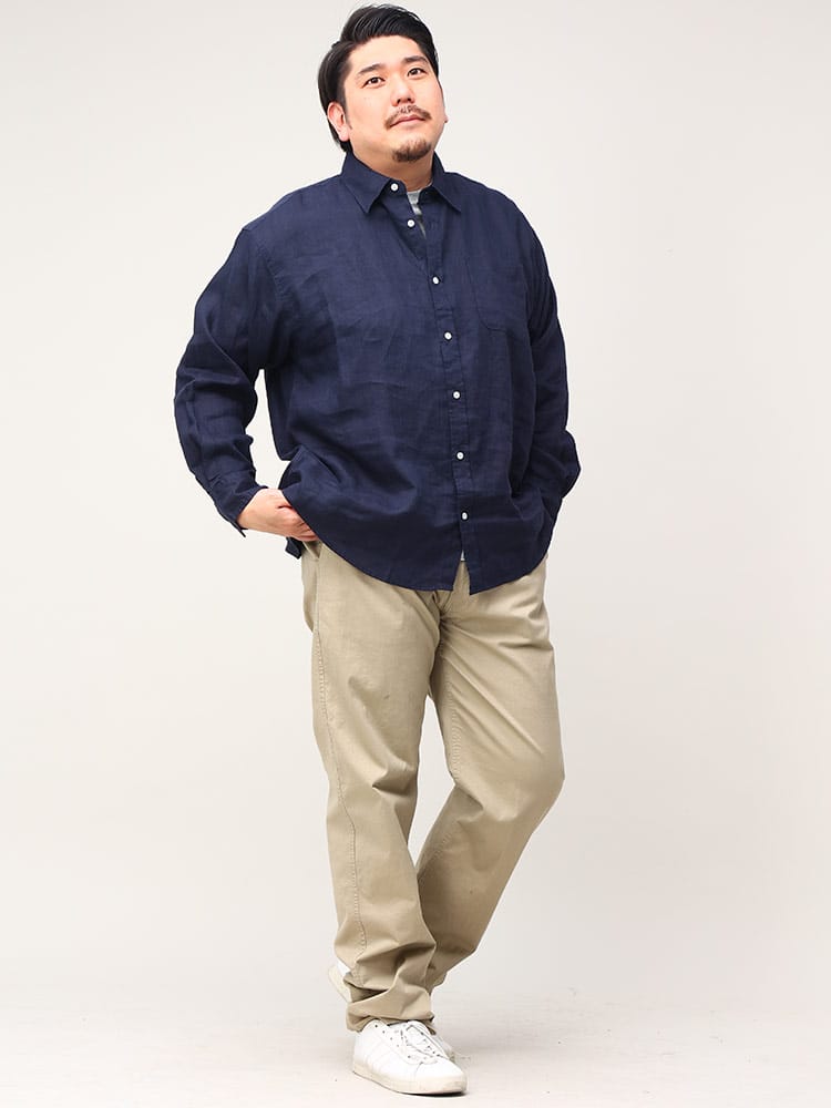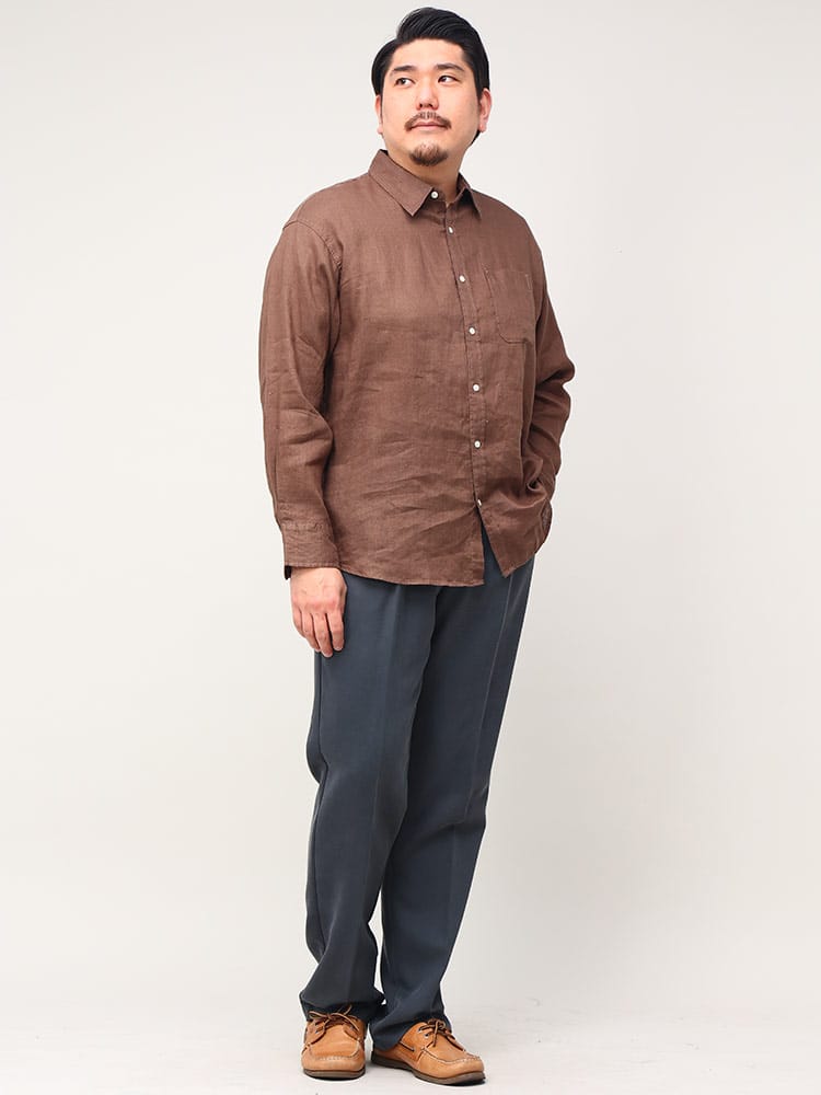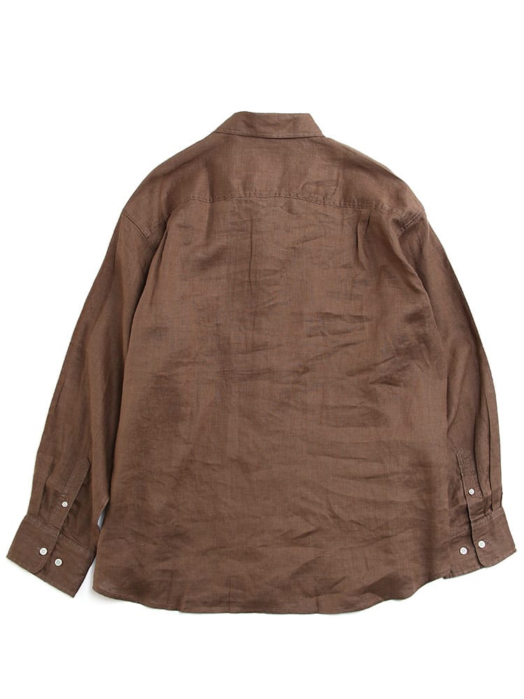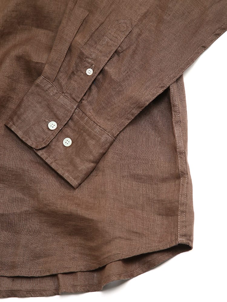 麻100%使用のレギュラーカラー長袖シャツです。通気性のあるリネンシャツは、吸水速乾性もあるので春夏には最適な一着。素材に抗菌性もあるのでカビや雑菌の繁殖をおさえてくれるのも嬉しいポイント。薄手ながらもしっかりとした耐久性のあるリネンはアクティブな着用にも耐えうる素材となっています。