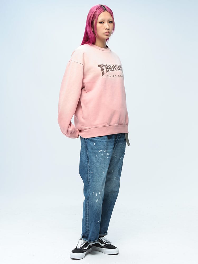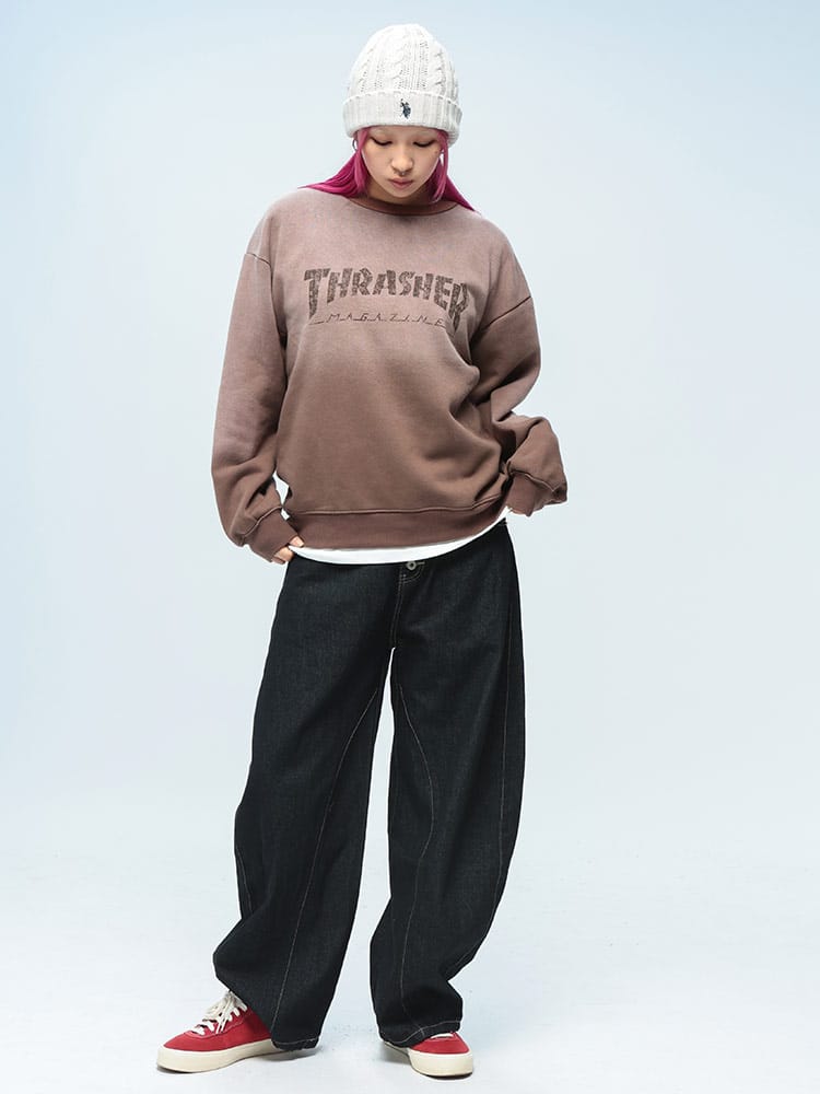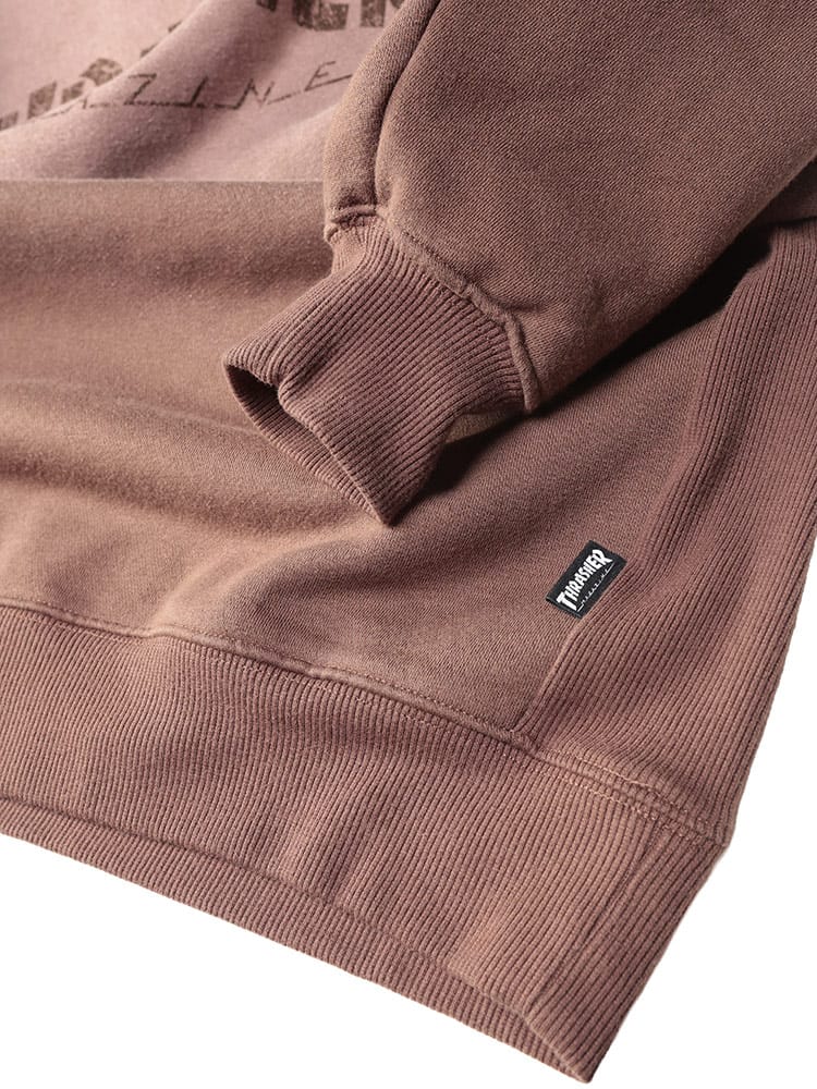 フロントに大きく配置されたロゴは、あえて色あせたようなフェード加工を施し、長年着込んだようなこなれた雰囲気を演出。ストリートスタイルに欠かせない、個性を引き立てるデザインです。素材には、柔らかく肌触りの良いポリエステルと綿の混紡生地を使用。裏地は裏起毛になっているため、ふんわりと暖かく、寒い季節でも快適な着心地をキープします。程よくゆったりとしたシルエットは、トレンド感のあるリラックススタイルにぴったり。デニムやカーゴパンツと合わせて、THRASHERらしいタフなストリートスタイルを楽しめます。着るほどに風合いが増していく、愛着の湧く一着です。