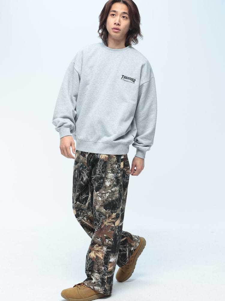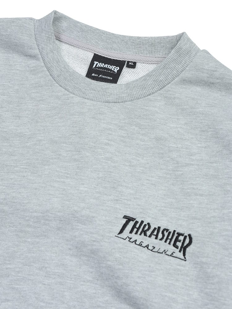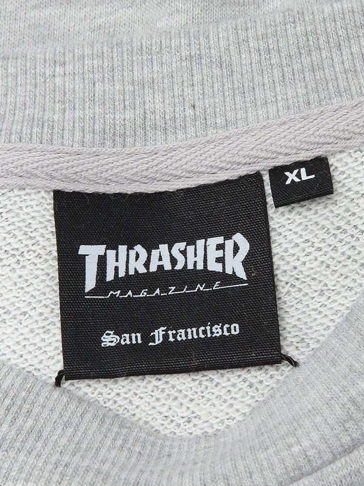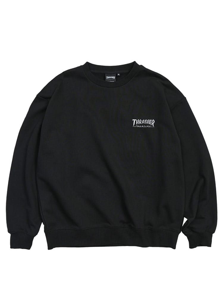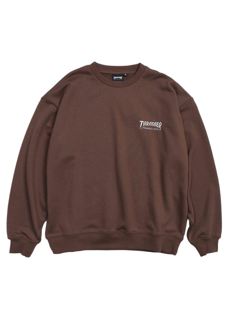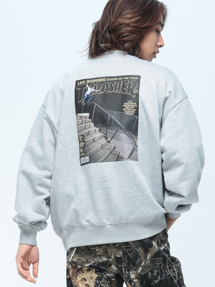 スケートボードシーンのアイコンとして君臨する「THRASHER(スラッシャー)」ブランドの魂を象徴するマガジンロゴを大胆に配したスウェットトレーナー。背面に施された圧倒的な存在感を放つバックプリント。スケーターカルチャーの歴史を物語るグラフィックが、バックスタイルを硬派に演出します。一方で、フロントの胸元には繊細なロゴ刺繍をあしらい、奥行きのある表情に仕上げているのがポイント。肌当たりの良い裏毛(パイル)素材を採用しているため、吸汗性に優れ、シーズンレスで快適に着用できるのも嬉しい仕様です。ゆったりとしたサイジングのユニセックス展開で、ストリートの王道を行くオーバーシルエットを楽しめます。デニムやワイドパンツと合わせたスケータースタイルはもちろん、クリーンな着こなしのハズしとしても優秀。世代を超えて愛され続ける、タフでエッジの効いた一着です。