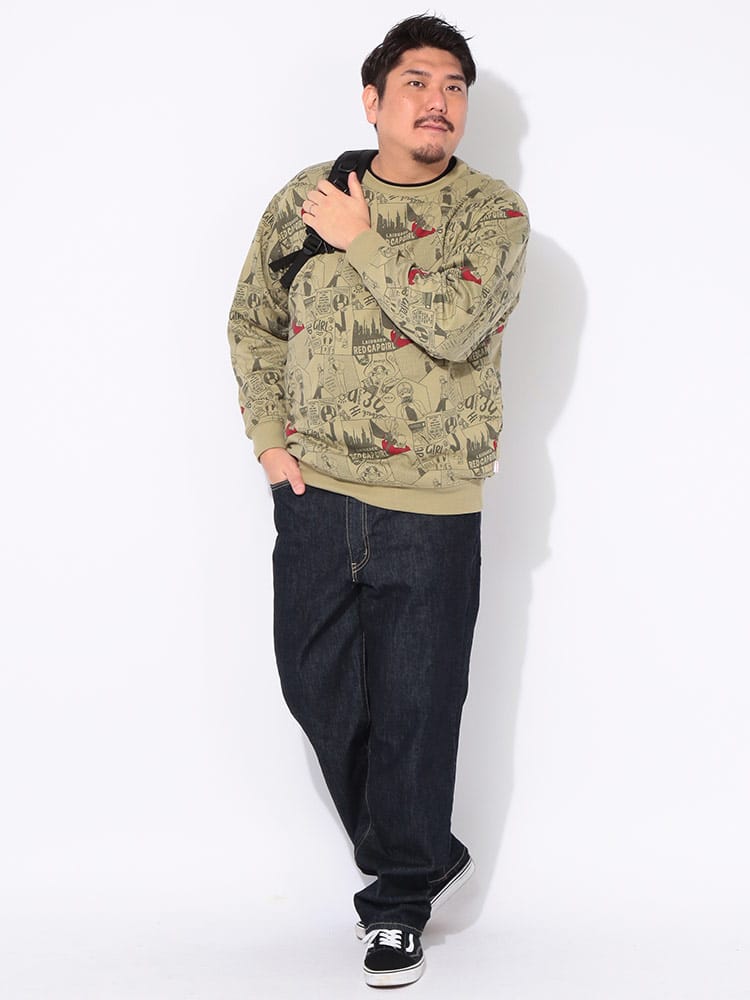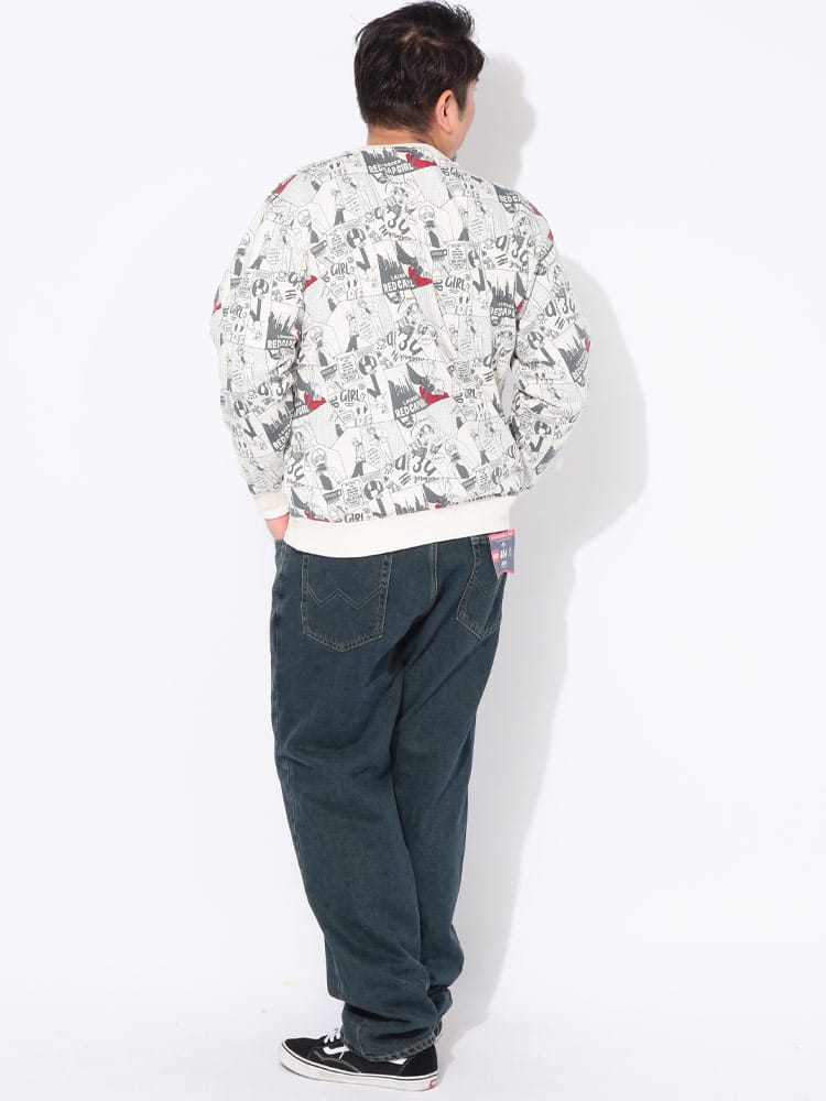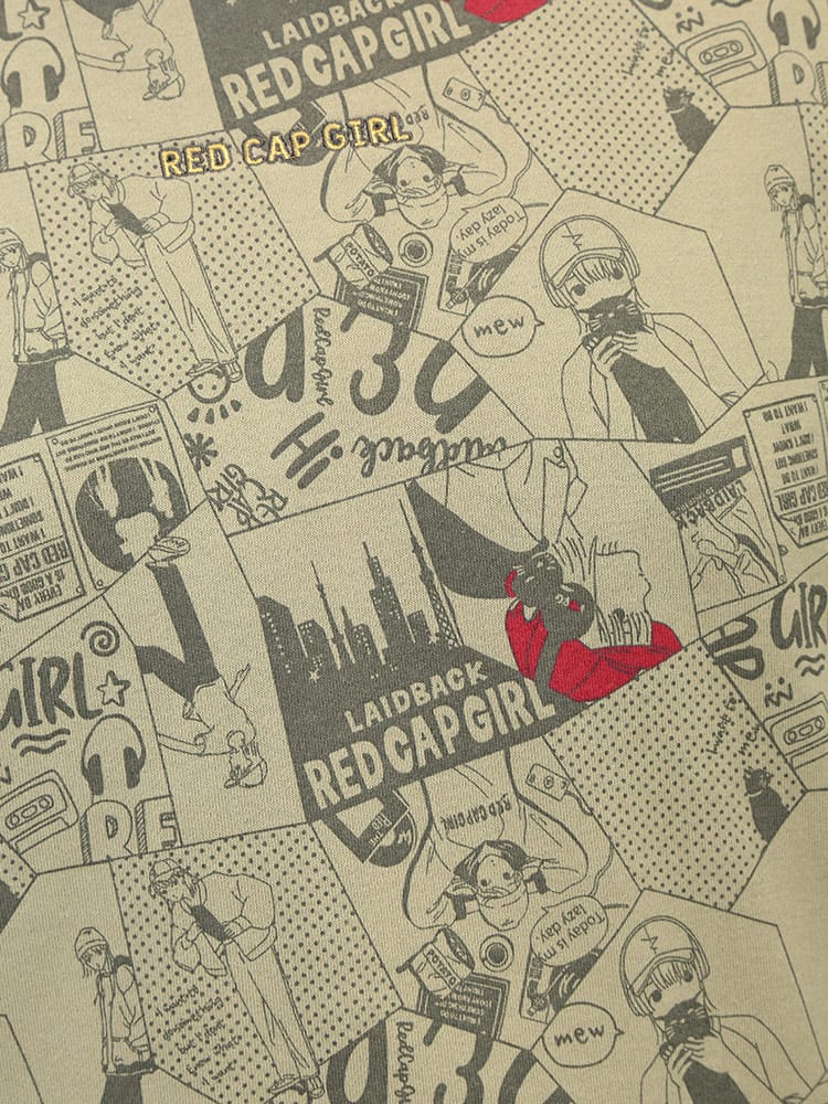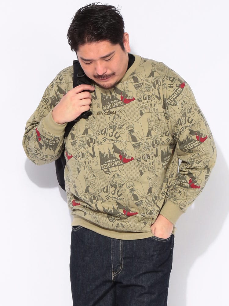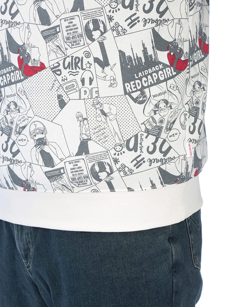 ストリートシーンで絶大な支持を得るRed Cap Girlから、背面に施されたインパクト抜群の総柄プリントが目を惹くクルーネックトレーナーが登場しました。ブランドの象徴である「赤い帽子の女の子」を大胆にデザインしたバックプリントは、後ろ姿から個性的なストリートスタイルを演出します。肌触りの良い裏毛仕様で仕上げており、秋から冬にかけてのレイヤードスタイルにも最適な厚みです。ゆったりとしたサイジングは、大きいサイズを求める方やトレンドのビッグシルエットを楽しみたい方にぴったりです。フロントはシンプルな表情ながら、振り向いた瞬間のキャッチーなグラフィックが周囲と差をつける、主役級の存在感を放つアイテムです。