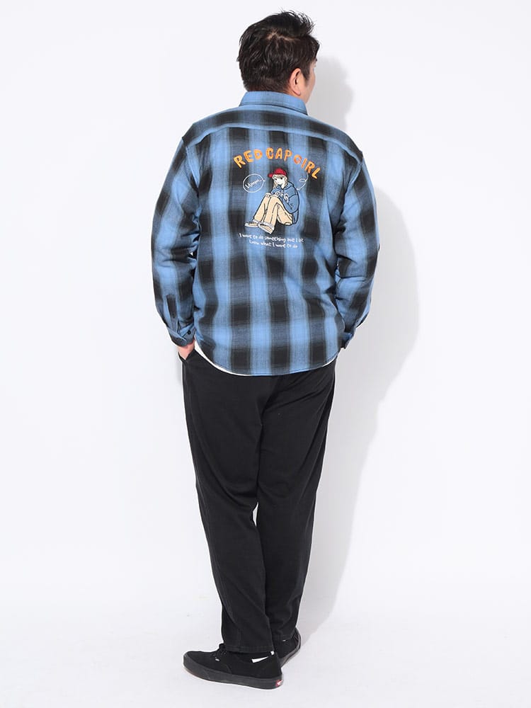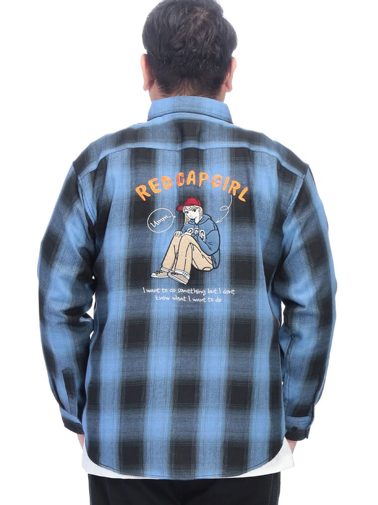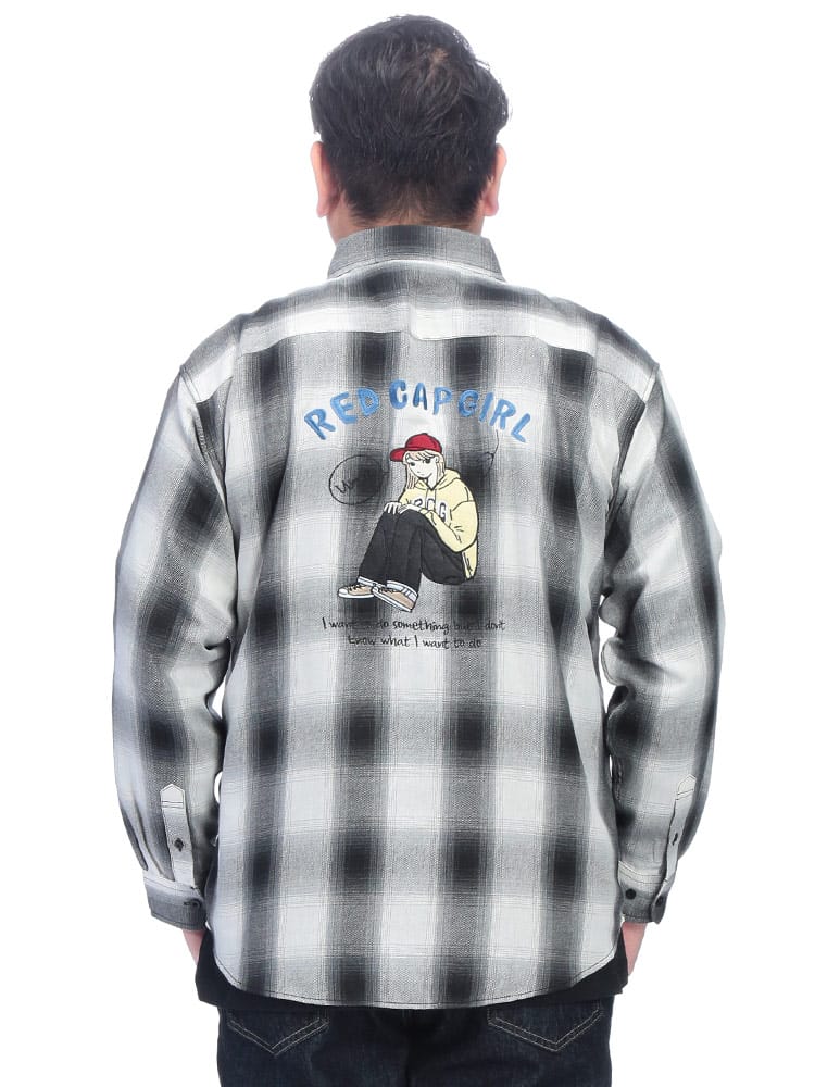 キャッチーなデザインで若者を中心に絶大な支持を得ているRed Cap Girlから、クラシックなチェック柄に遊び心を加えた長袖シャツが登場しました。背面に施されたブランドアイコンである「赤い帽子の女の子」のバック刺繍が、後ろ姿に確かな存在感とトレンド感を演出します。季節感のある落ち着いたチェック柄は、カジュアルなデニムから綺麗なスラックスまで幅広いボトムスと相性が良く、秋口の羽織りから冬場のインナー使いまでロングシーズン活躍します。身幅にゆとりを持たせたリラックスシルエットは、大きいサイズをお探しの方や旬のオーバーサイズな着こなしを楽しみたい方に最適です。便利な胸ポケットを備え、細部のデザインにまでこだわりが詰まったユニセックスで愛用できる一着です。