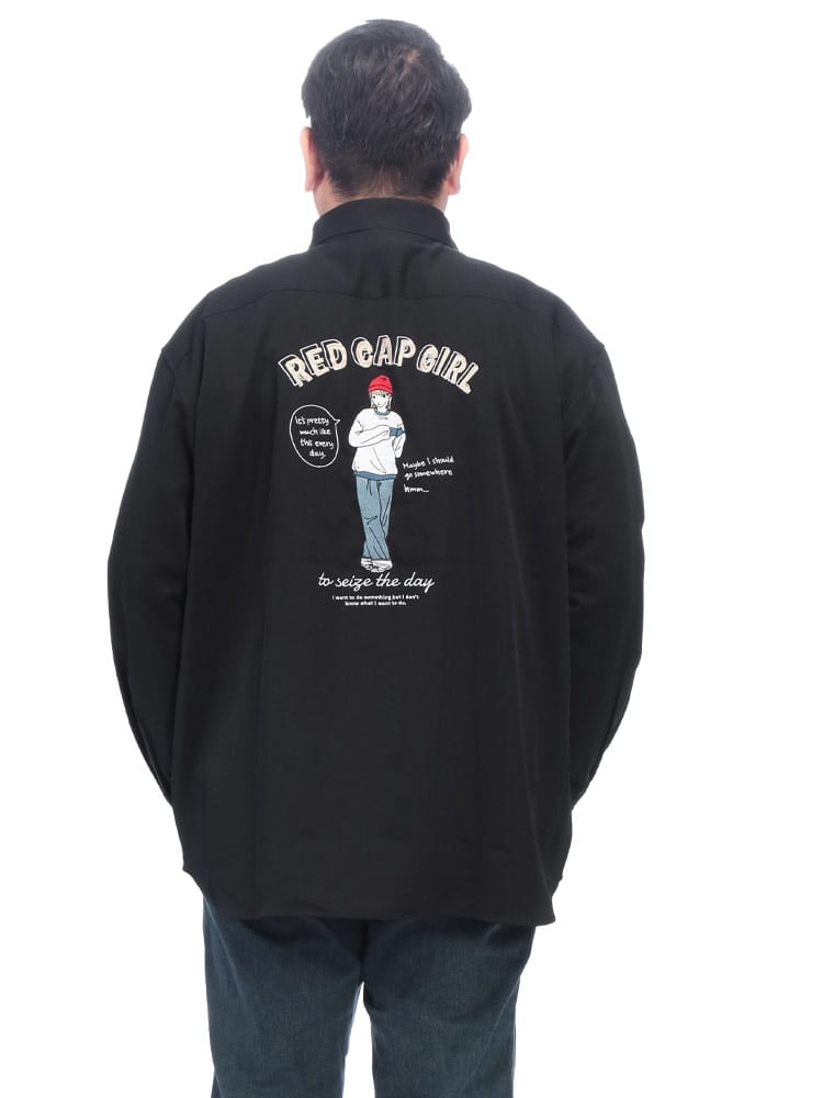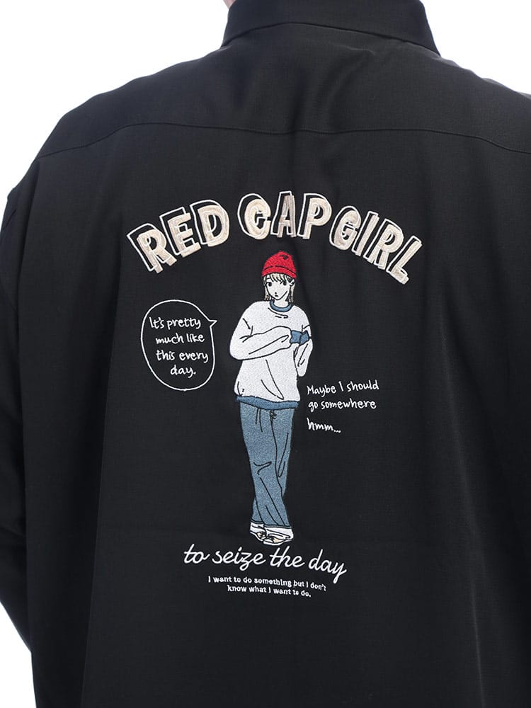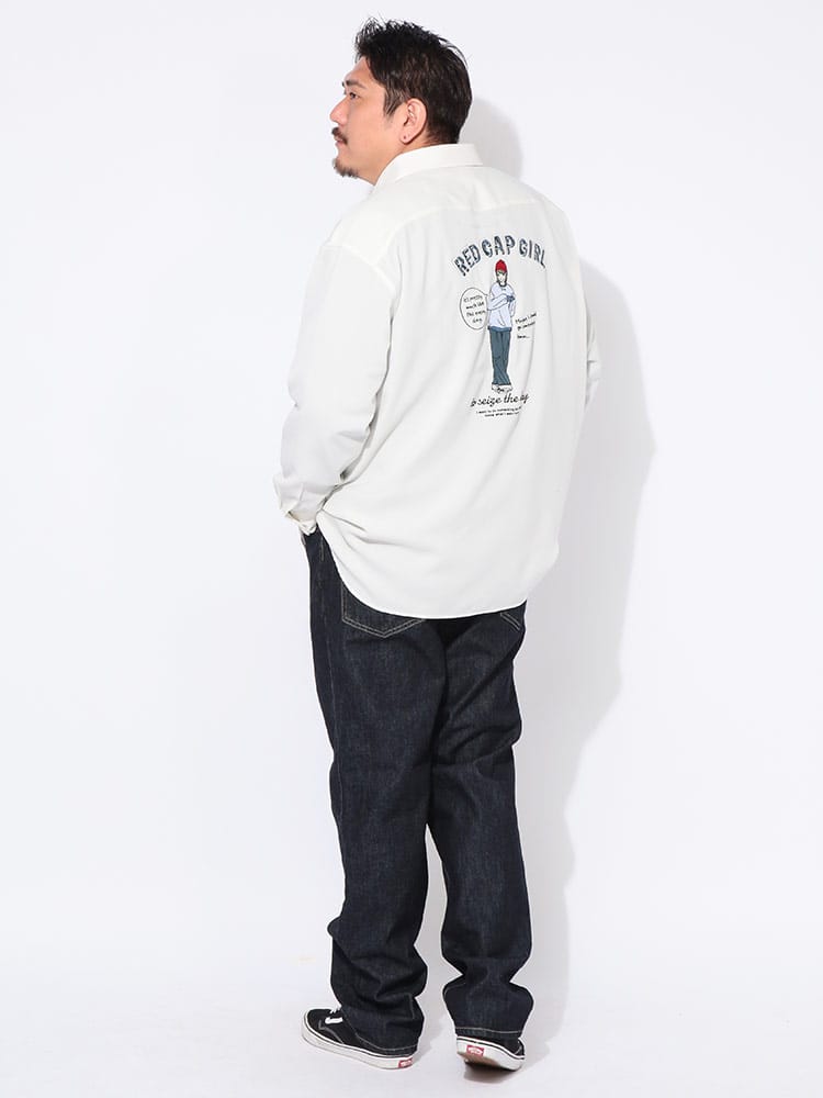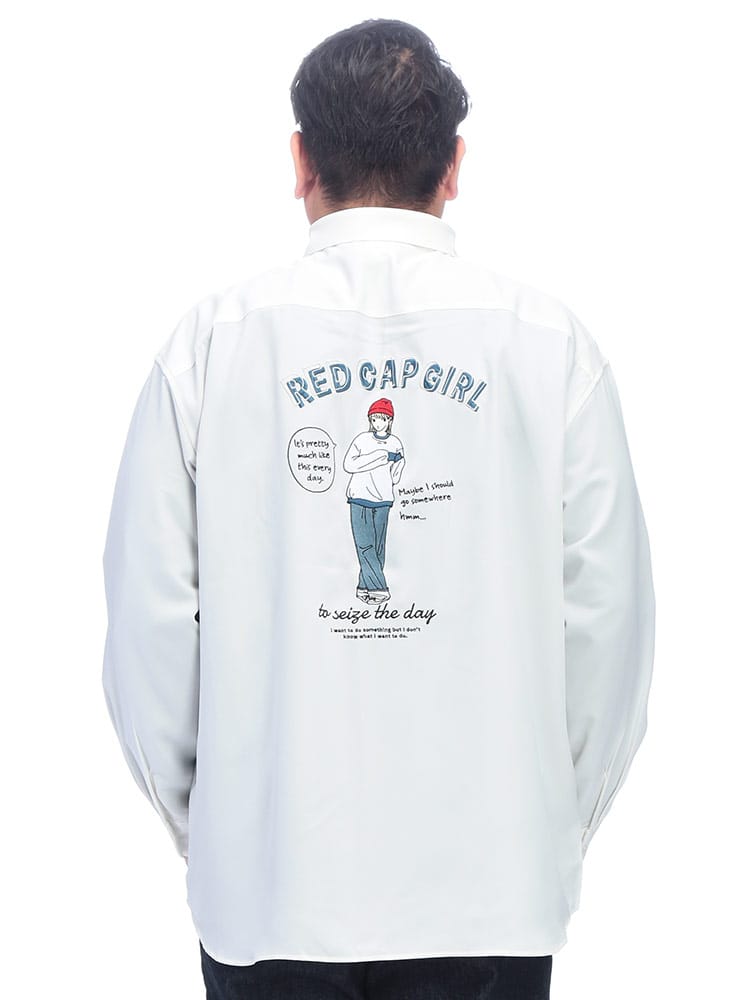 アイコニックなデザインで幅広い層から支持を集めるRed Cap Girlから、背面に施されたブランドロゴと「赤い帽子の女の子」のバック刺繍が印象的な長袖シャツが登場しました。シンプルながらも遊び心のある刺繍が後ろ姿に確かな個性を演出し、ストリートからカジュアルまで幅広いコーディネートの主役として活躍します。ゆとりのあるリラックスシルエットを採用しており、大きいサイズをお探しの方や、トレンドのビッグシルエットを楽しみたい方にも最適な一着です。便利な胸ポケットを備えた実用性の高いデザインは、秋口の羽織りから冬場のインナー使いまでロングシーズン着回せます。細部までこだわりが詰まった、ユニセックスで愛用できる万能なアイテムです。