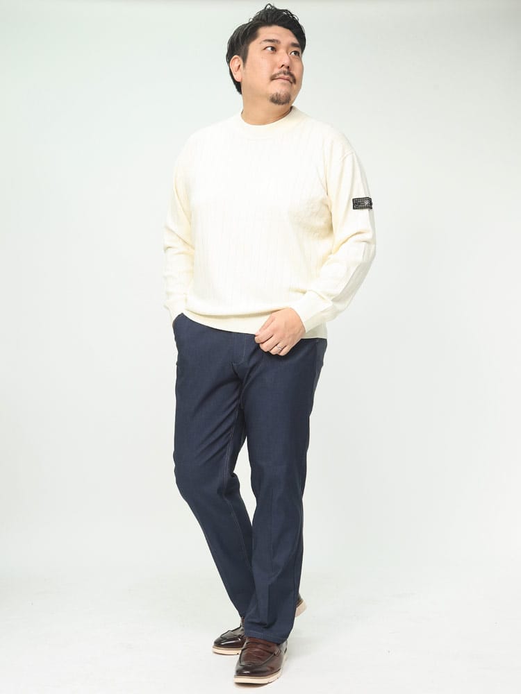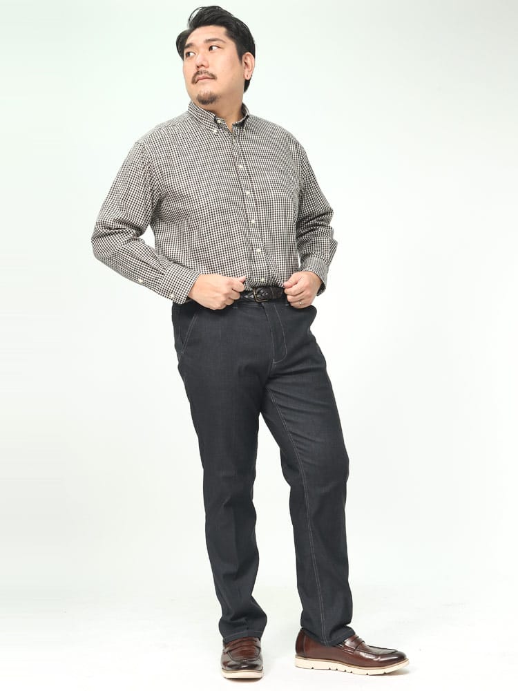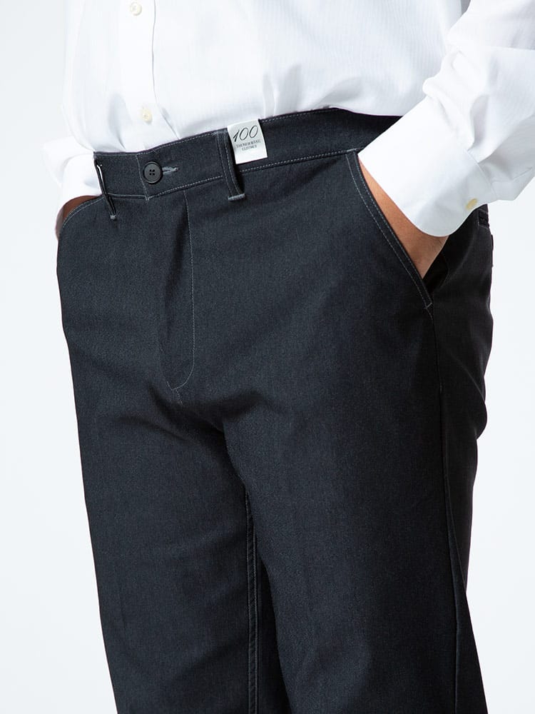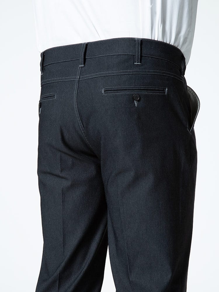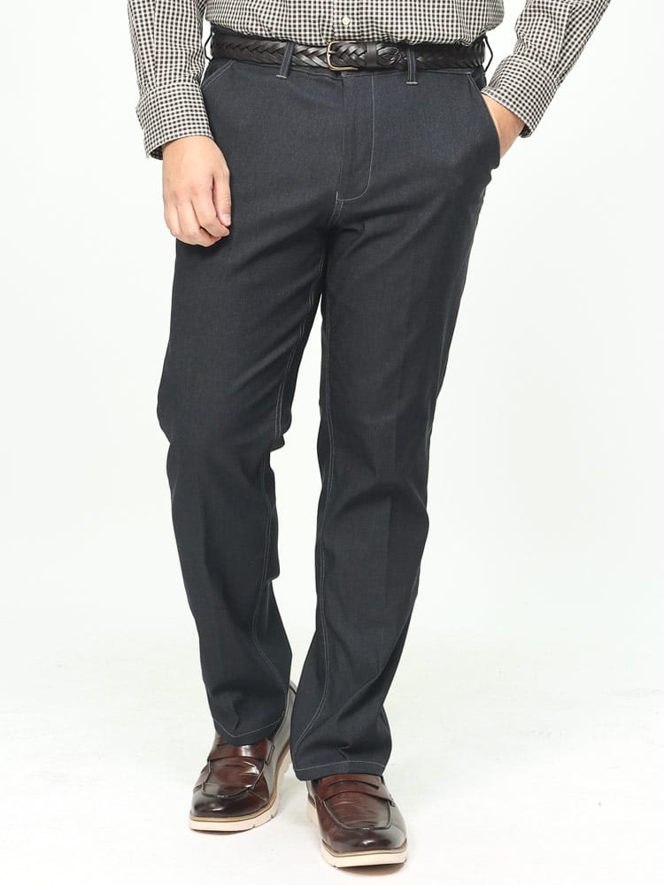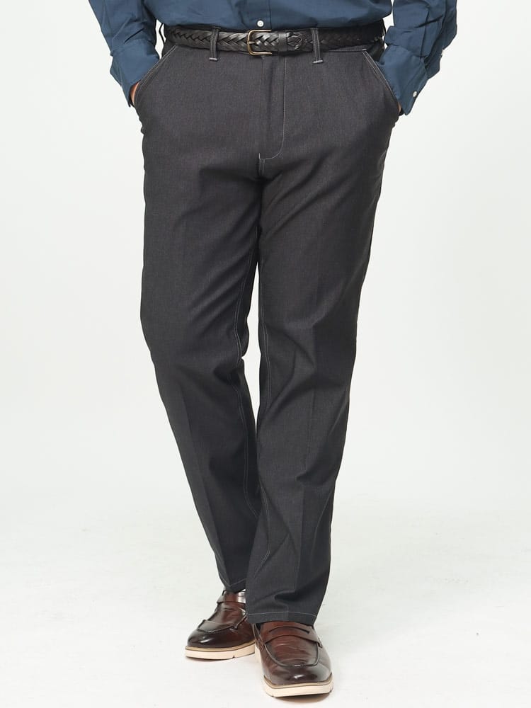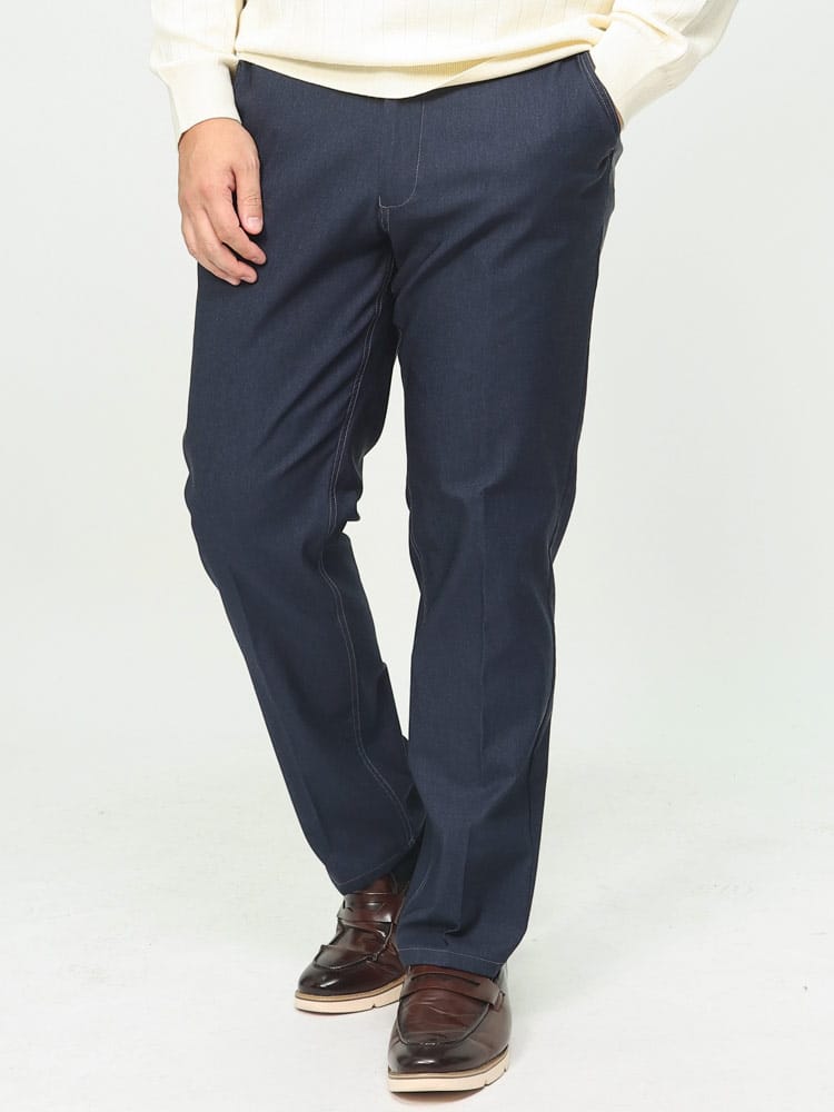 スーパーストレッチで抜群の伸縮性とフィット感を持った裏起毛 デニム調 ノータック ロングパンツです。デニム調でビジカジスタイルにぴったりなアイテム。ノータックでスッキリとしたデザイン。裏起毛で保温性に優れています。ウエストストレッチでゆったりとした穿き心地です。ご家庭でお手入れが出来るウォッシャブルなのもポイントです。