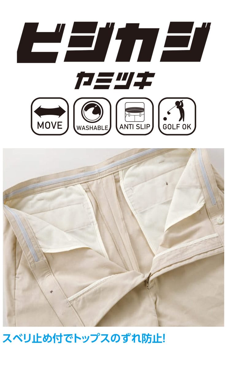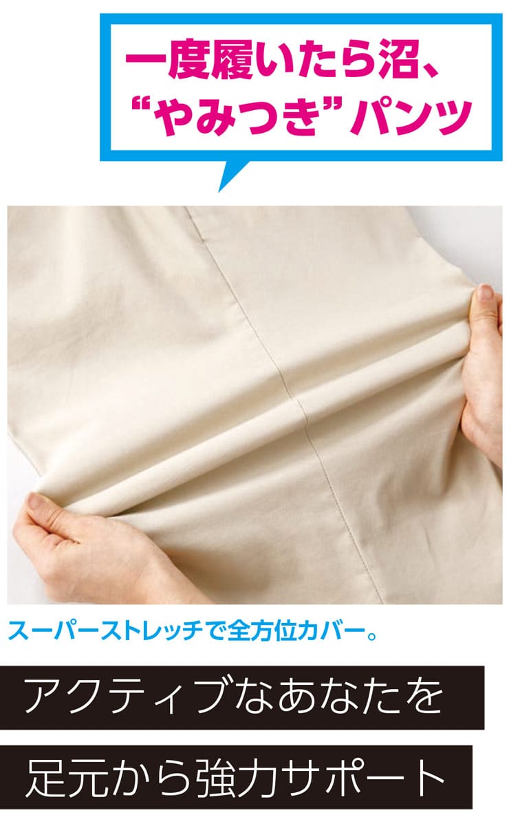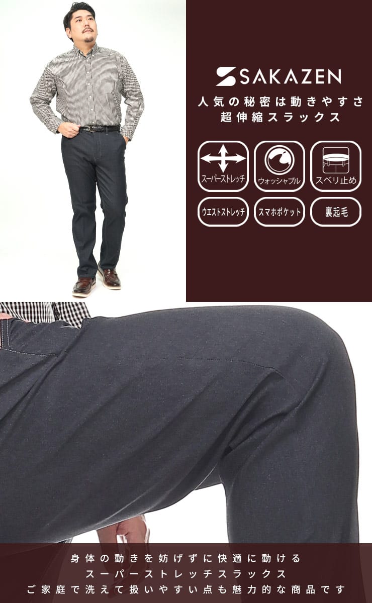 仕様 :スーパーストレッチ / ウエストストレッチ / ウォッシャブル / スマホポケット / ウエスト滑り止め / 裏起毛加工 / 外側ポケット数×4つ / ジップフライ