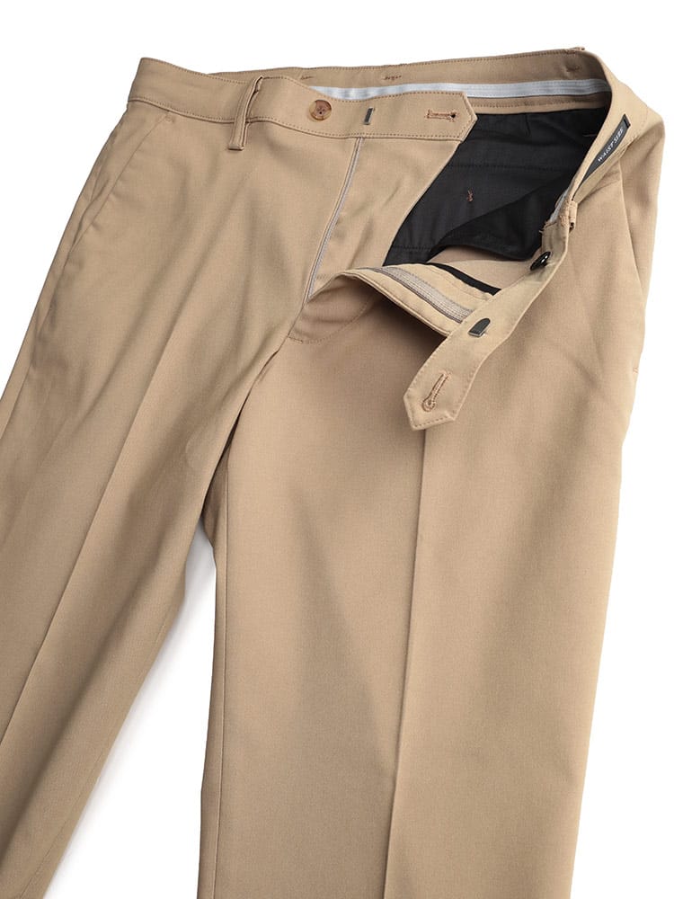 ビジカジシリーズのスーパーストレッチノータック無地パンツは、ウエストストレッチと内側すべり止めで抜群のフィット感を提供。ウォッシャブル仕様でお手入れ簡単、スマホポケットで便利な収納も可能です。伸縮性に優れた生地が快適な動きをサポートし、ビジネスからカジュアル、ゴルフシーンまで幅広く活躍する万能な一本です。