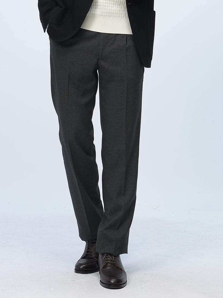 ノーブルマンのウエストアジャスター付きピンヘッドワンタックスラックスは、細やかなピンヘッド柄が上品な印象を与えます。ウエストアジャスターにより、快適で柔軟なフィット感を提供し、長時間の着用でも快適です。ワンタックデザインが自然なシルエットを作り、ビジネスからフォーマルまで幅広く活躍する一着です。