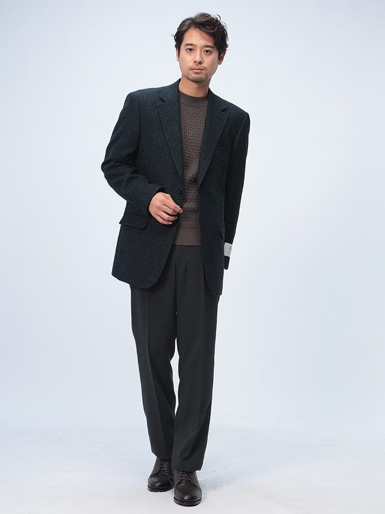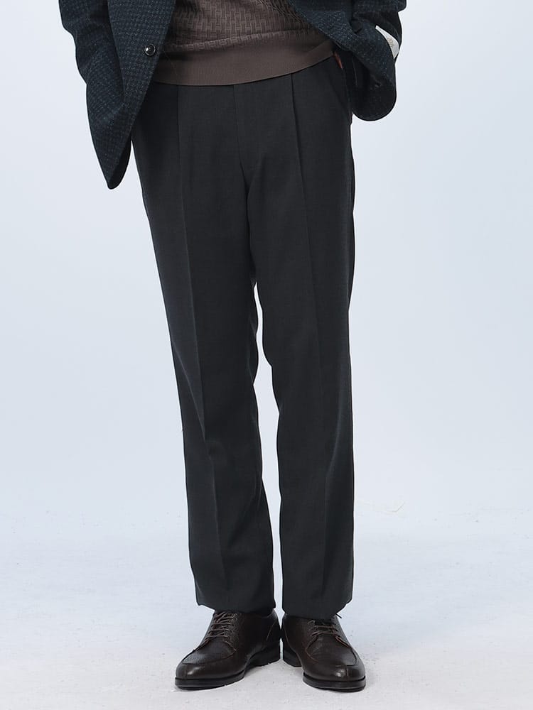 ノーブルマンのウエストアジャスター付きグレンチェックワンタックスラックスは、クラシックなグレンチェック柄が洗練されたスタイルを演出します。ウエストアジャスター機能により快適なフィット感が得られ、着用時のストレスを軽減します。ワンタックデザインが程よいリラックス感を加え、ビジネスからカジュアルまで幅広いシーンに対応するエレガントな一着です。