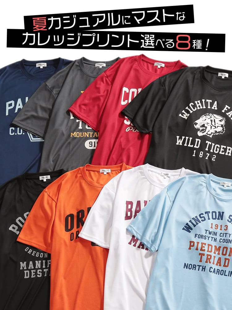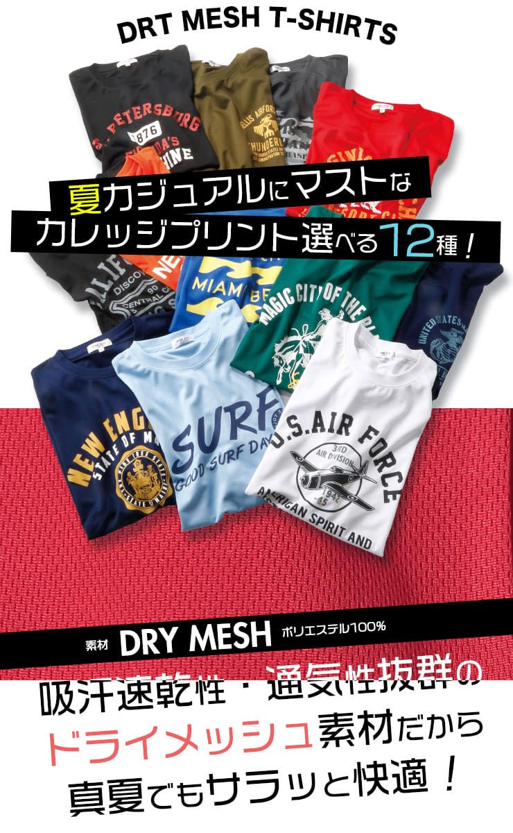DRYメッシュで快適な着心地のクルーネック 半袖 Tシャツ。プリントデザインがお洒落なアイテム。首元はベーシックなクルーネック。吸汗速乾と抗菌防臭機能搭載で春夏シーズンにおすすめのアイテムです。