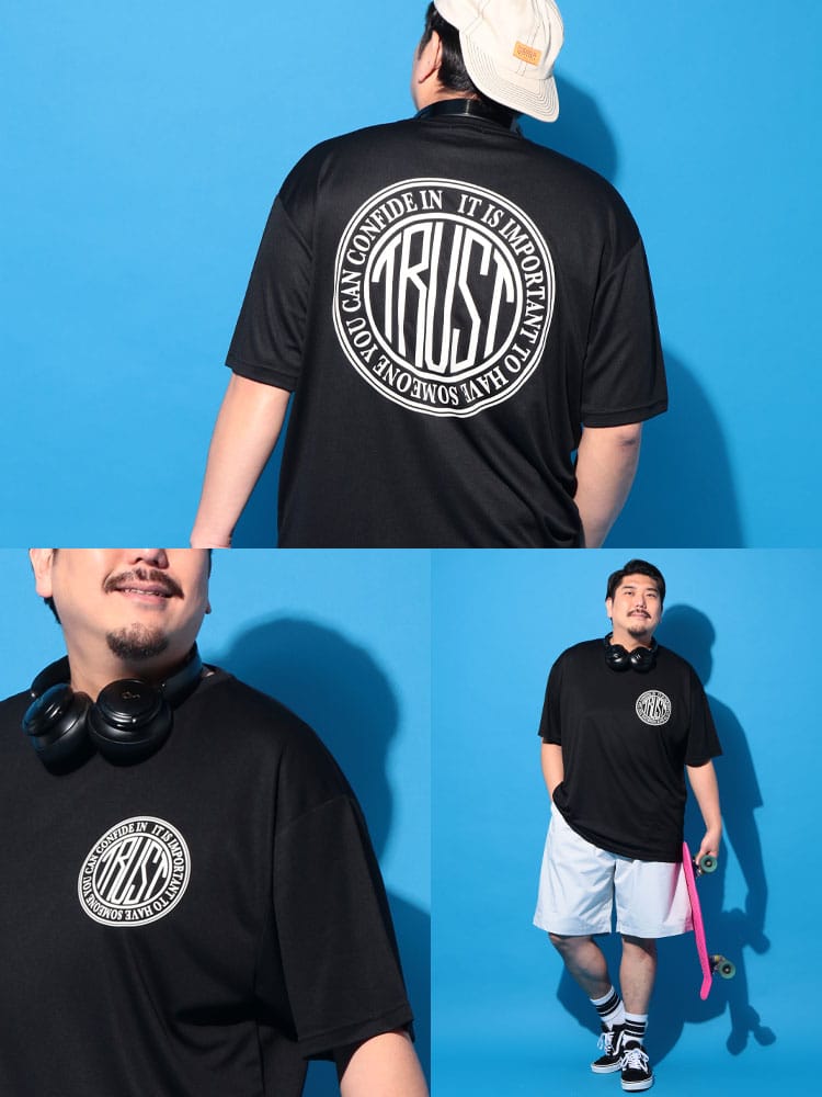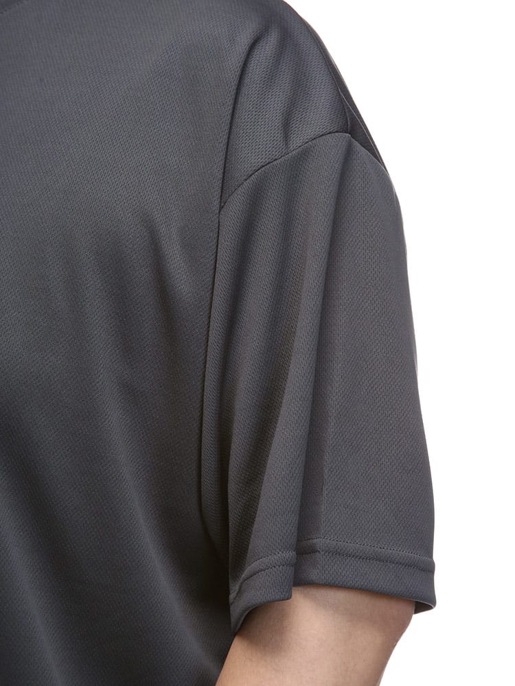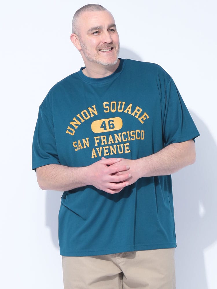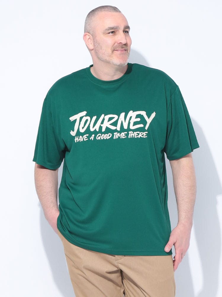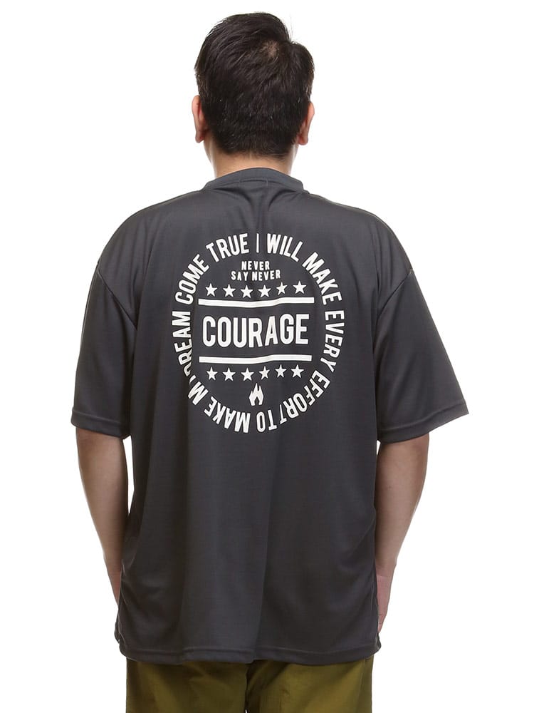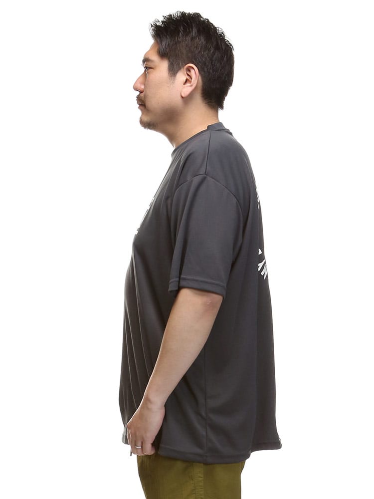 フロントのプリントデザインが雰囲気のあるクルーネック 半袖 Tシャツです。首元はベーシックなクルーネックデザイン。ドライメッシュの吸汗速乾生地で汗のべたつきが少なく、サラッとした着心地です。
