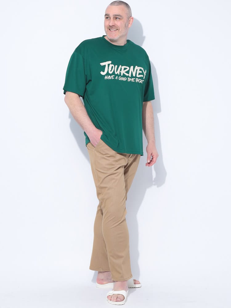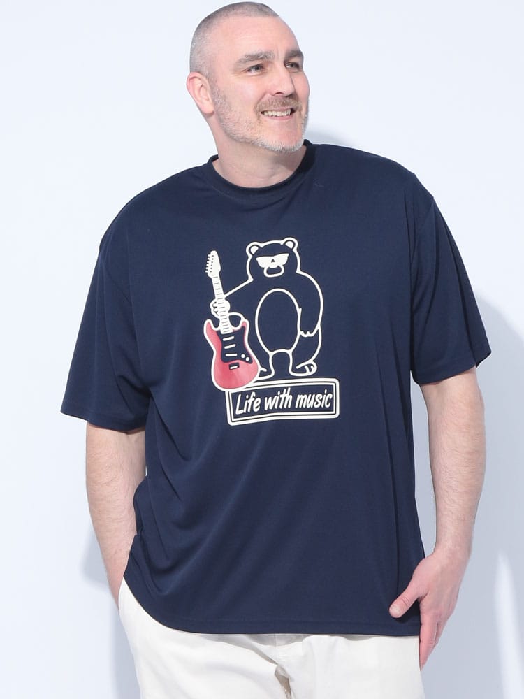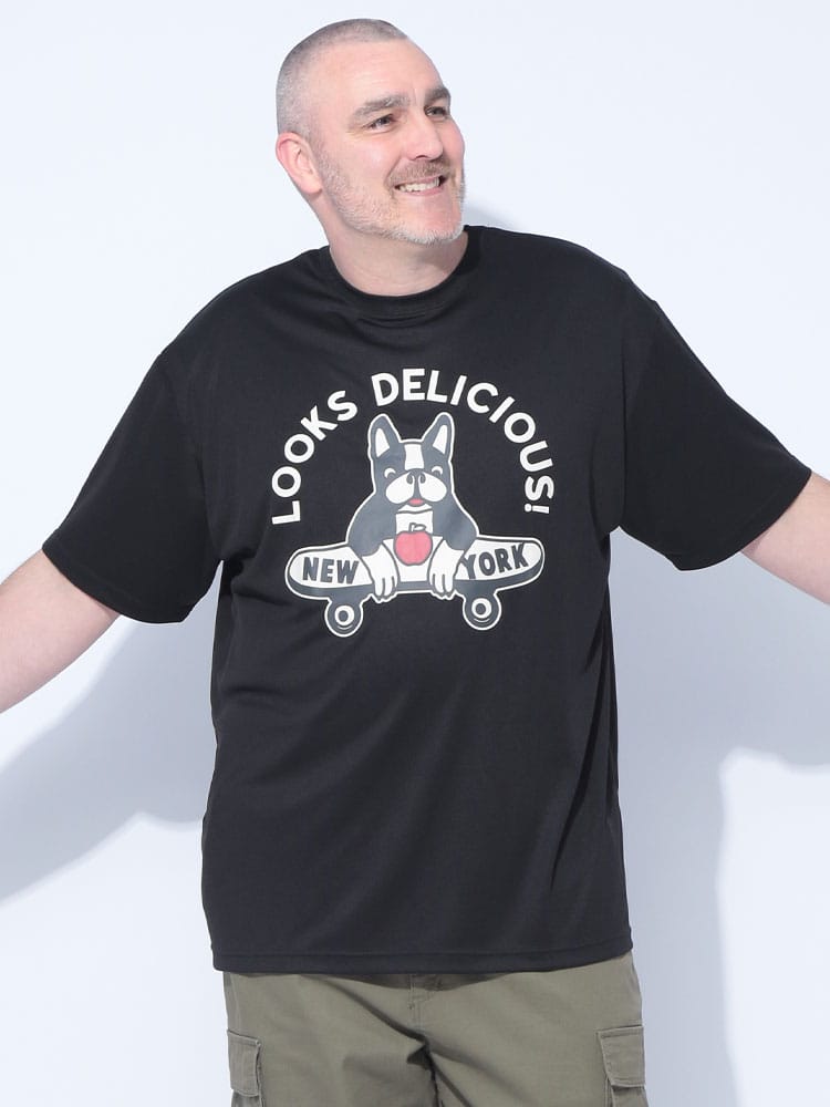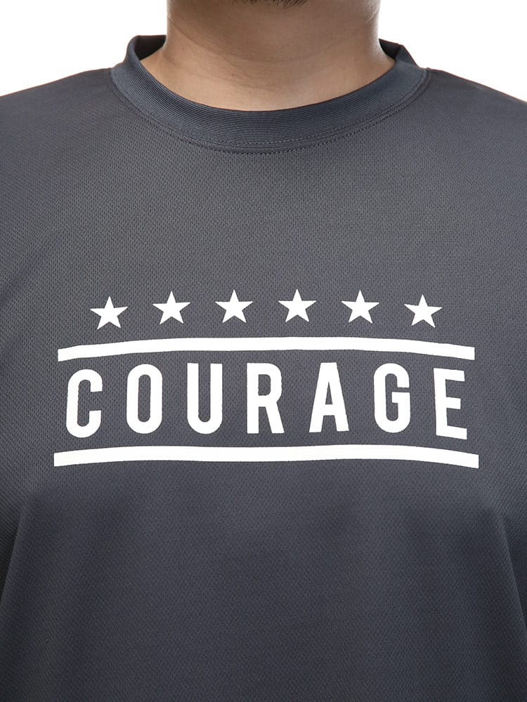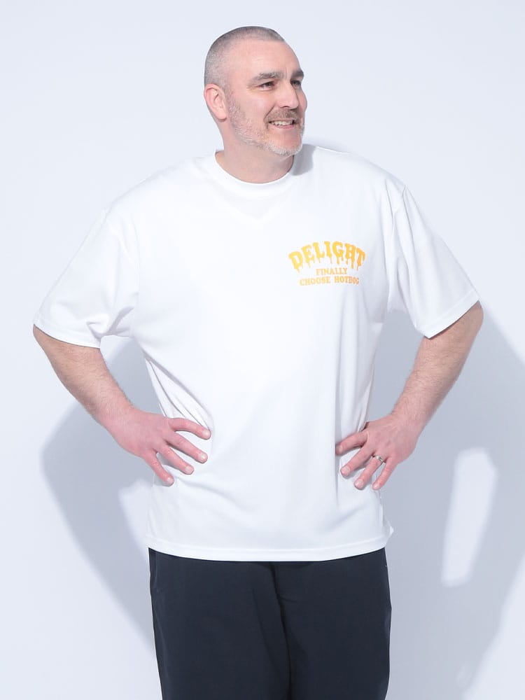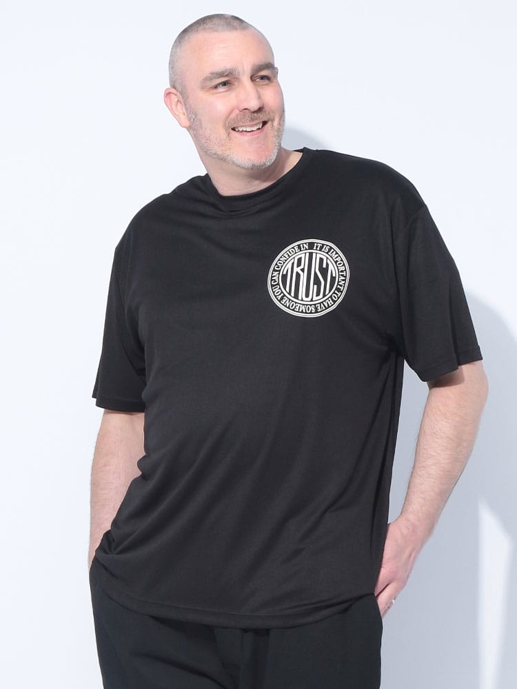 フロントのプリントデザインが雰囲気のあるクルーネック 半袖 Tシャツです。首元はベーシックなクルーネックデザイン。ドライメッシュの吸汗速乾生地で汗のべたつきが少なく、サラッとした着心地です。