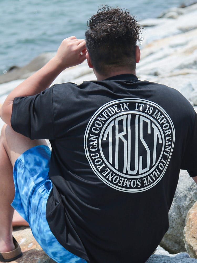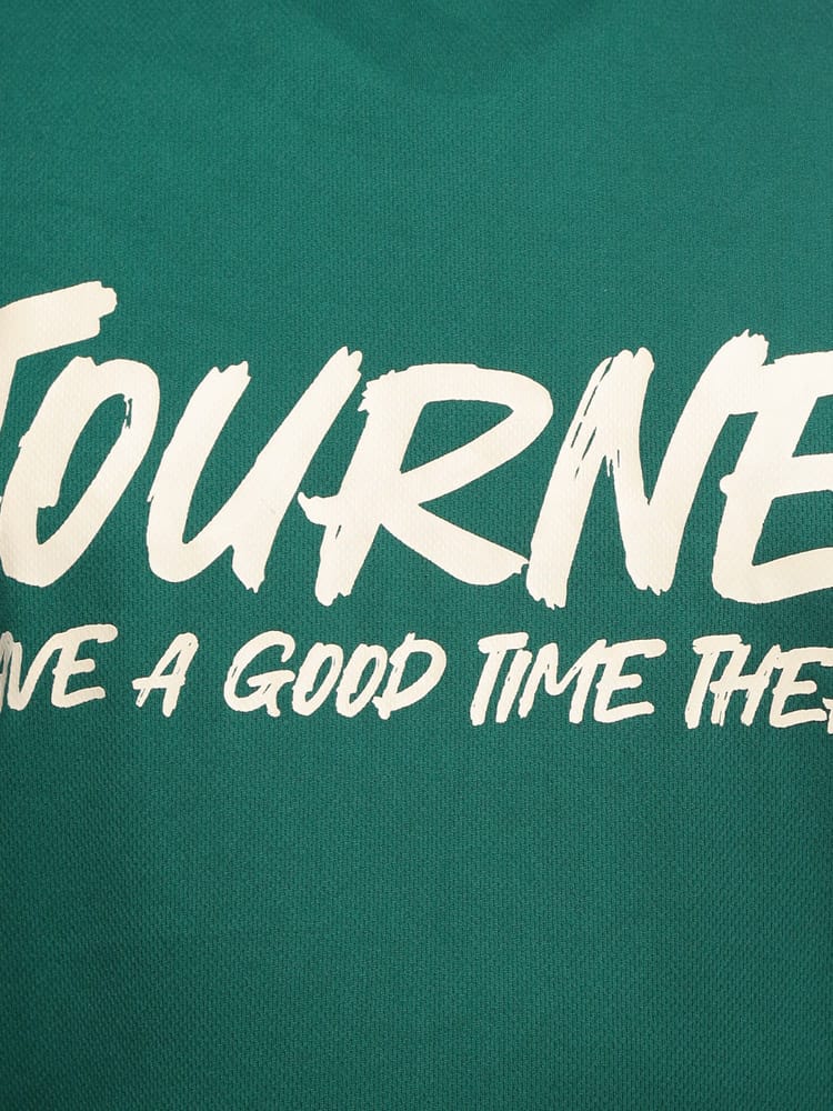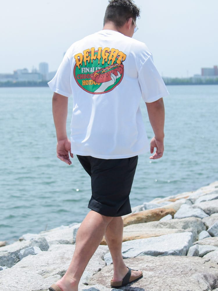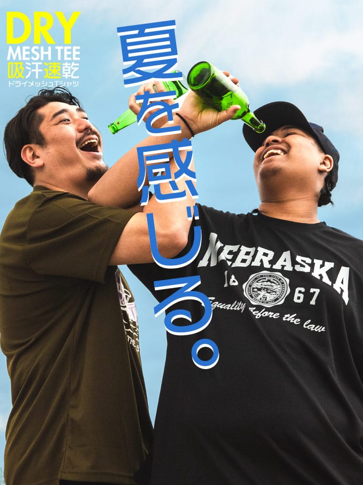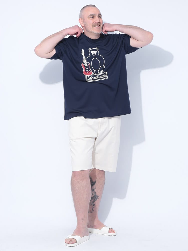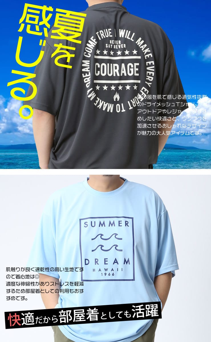 フロントのプリントデザインが雰囲気のあるクルーネック 半袖 Tシャツです。首元はベーシックなクルーネックデザイン。ドライメッシュの吸汗速乾生地で汗のべたつきが少なく、サラッとした着心地です。