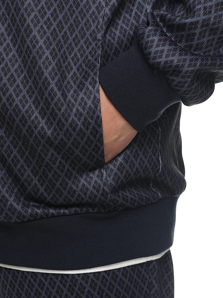 ニットフリース総柄プリントスタンドカラーパーカーは、柔らかく温もりのあるニットフリース素材に、目を惹く総柄プリントを施したアウターウェアです。立ち襟(スタンドカラー)デザインが風から首周りを守り、カジュアルながらもエレガントな雰囲気を演出します。軽い着心地とスタイリッシュな外観で、秋冬のレジャーや日常着として最適です。