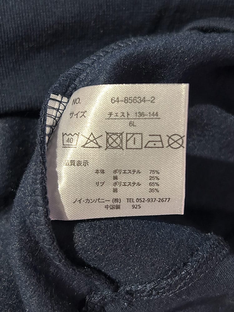 素材 :[本体]ポリエステル75% 綿25% [リブ部分]ポリエステル65% 綿35%