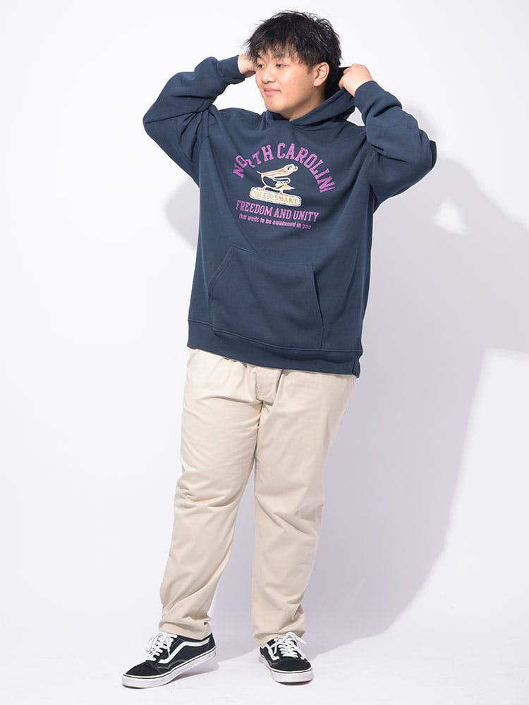 SMACK ASPIRATIONのカレッジプリントパーカーは、アメリカンカジュアルな雰囲気満点!裏起毛で暖かく、ゆったりとしたシルエットがリラックス感を演出します。カジュアルなデザインに、大きめのポケットがアクセント。大きいサイズもご用意しているので、ゆったりとリラックスして着こなせます。