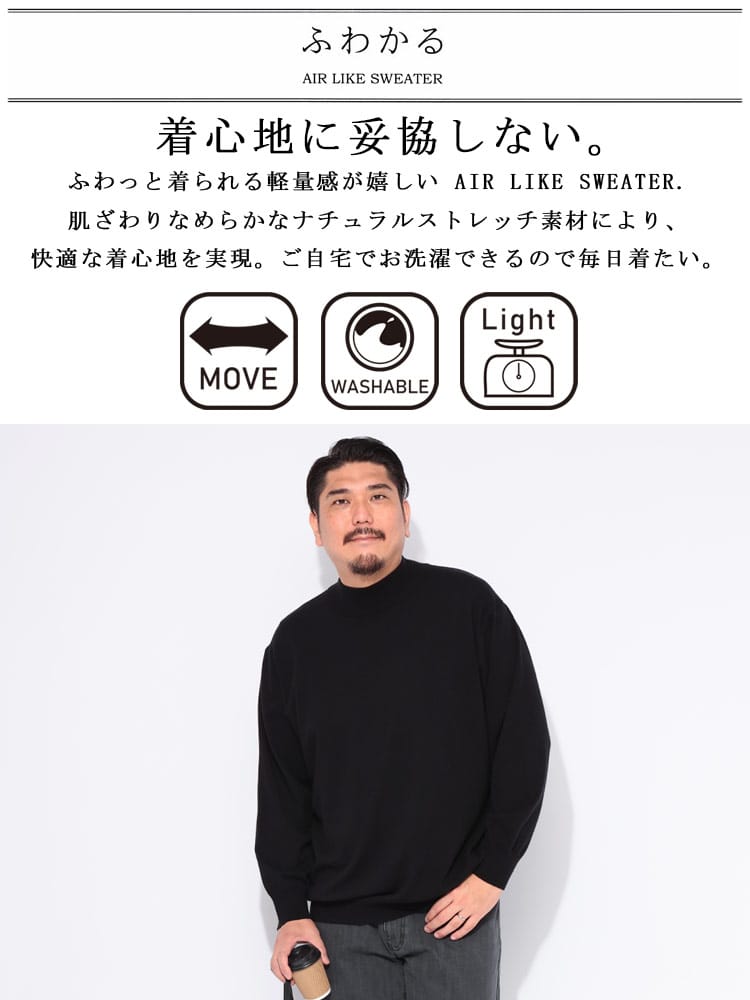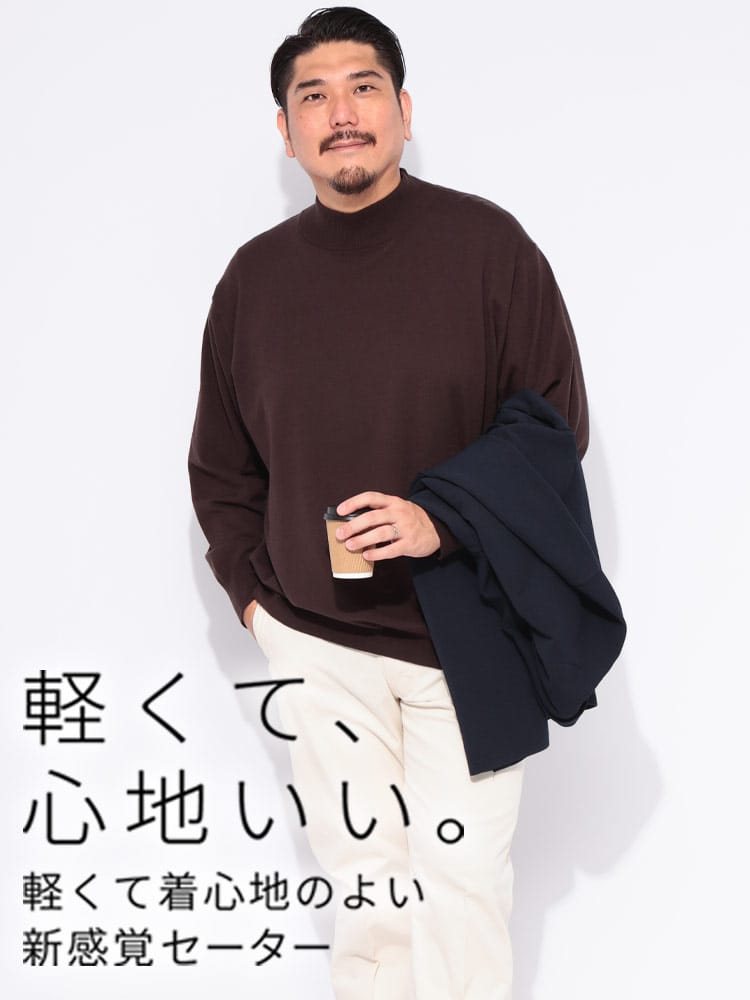 「まるでカシミヤ!」と錯覚するほどの極上の肌触りを追求した、B&T CLUBのモックネックニットセーター。この12G天竺編みニットは、驚くほど軽量で、一度着たら手放せなくなる心地よさです。首元を優しく包み込むモックネックは、タートルネックよりもすっきりとした印象で、上品さを演出します。嬉しいストレッチ性で動きやすさも抜群。ブラックとブラウンのシックなカラーは、どんなコーディネートにも合わせやすく、幅広いシーンで活躍します。ご自宅で洗濯可能なウォッシャブル仕様なので、お手入れも簡単です。大きいサイズもご用意しました。この冬、毎日でも着たくなる「ふわかる」ニットで、快適なおしゃれをお楽しみください。