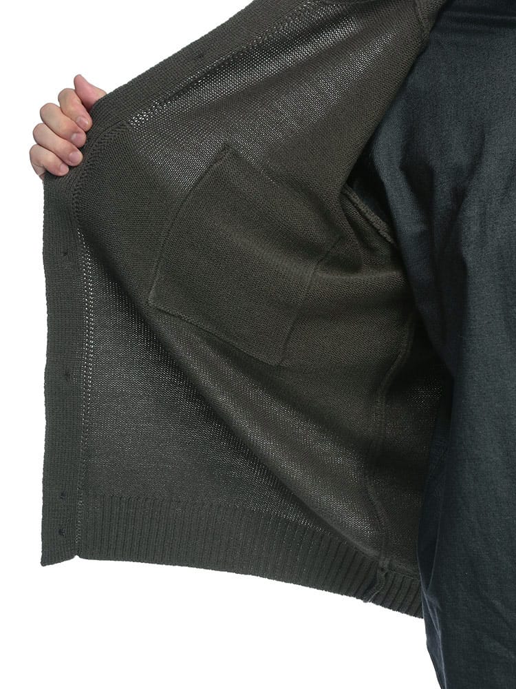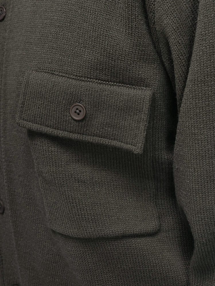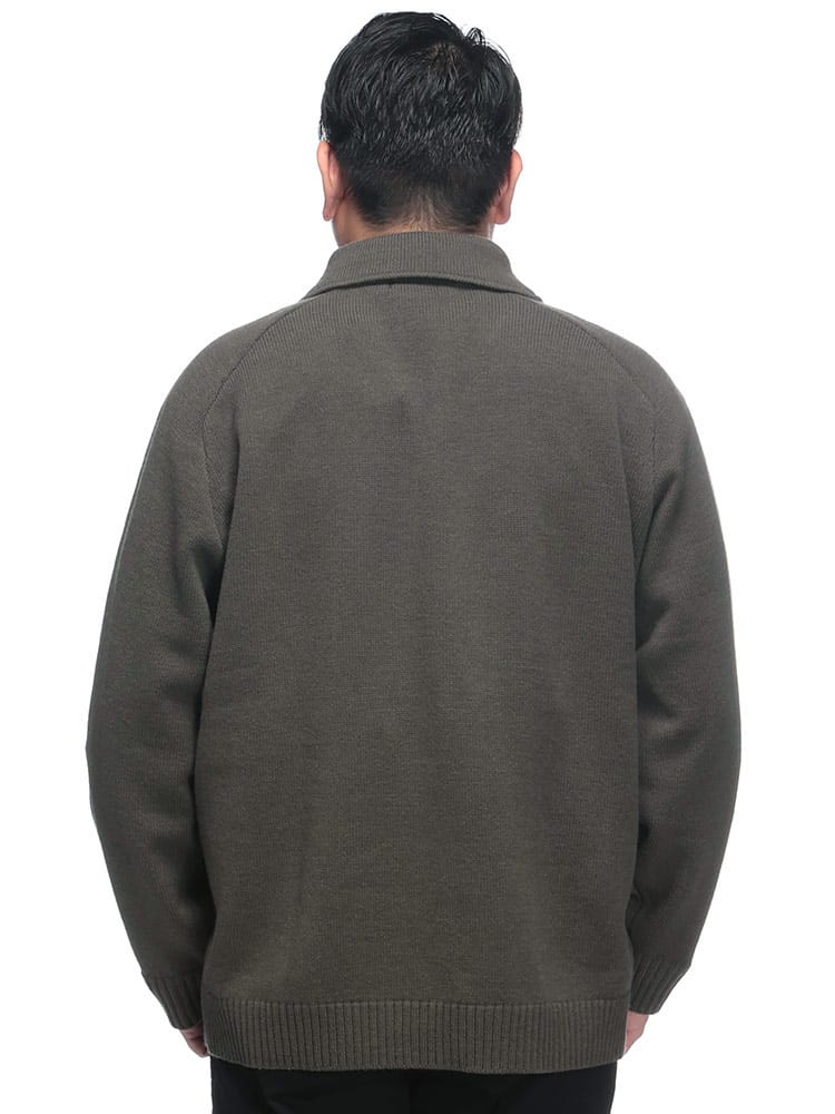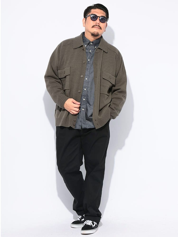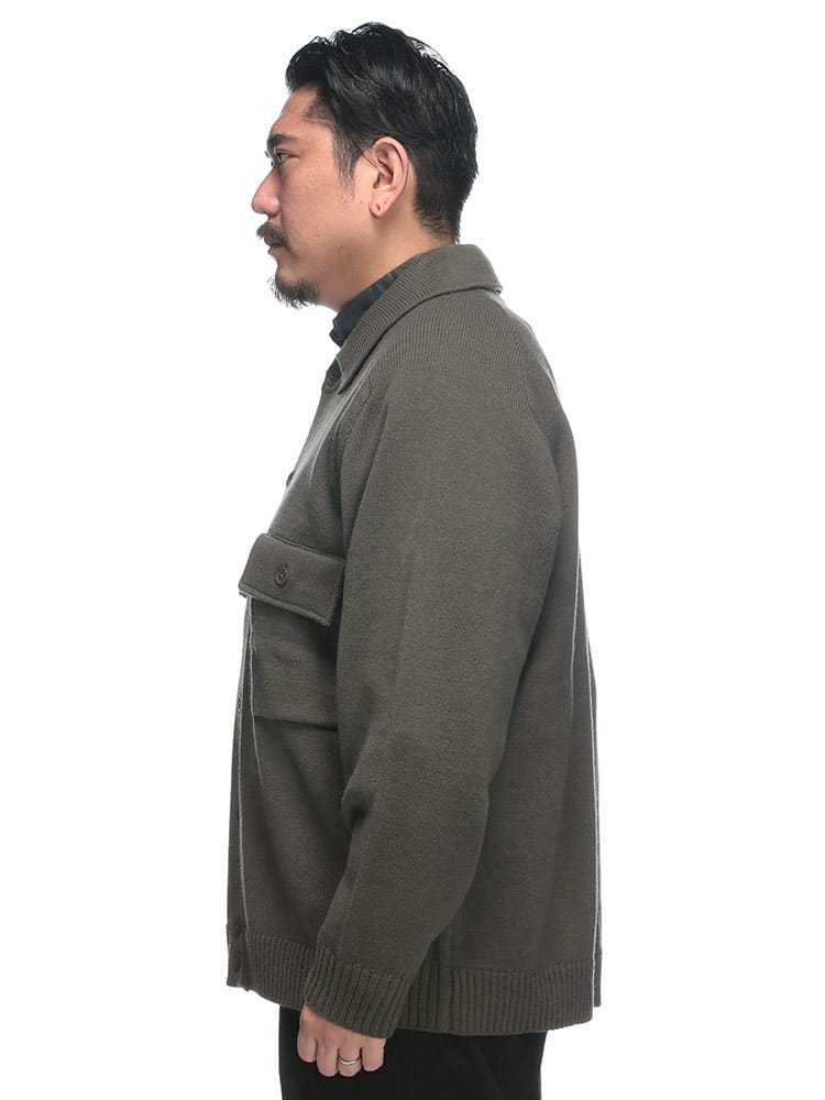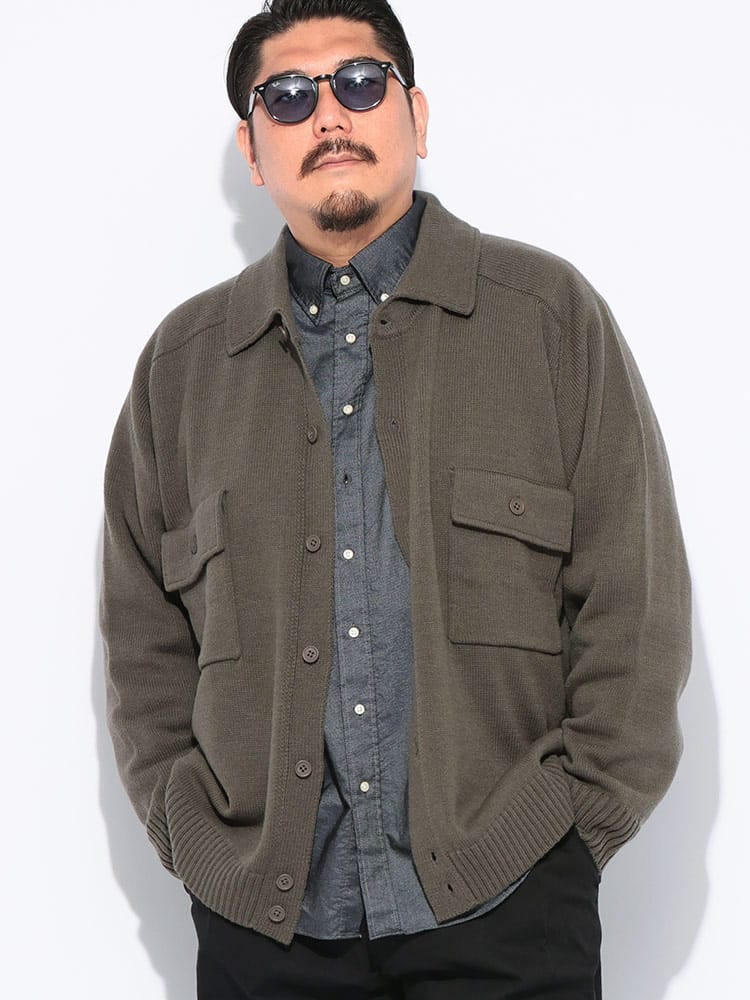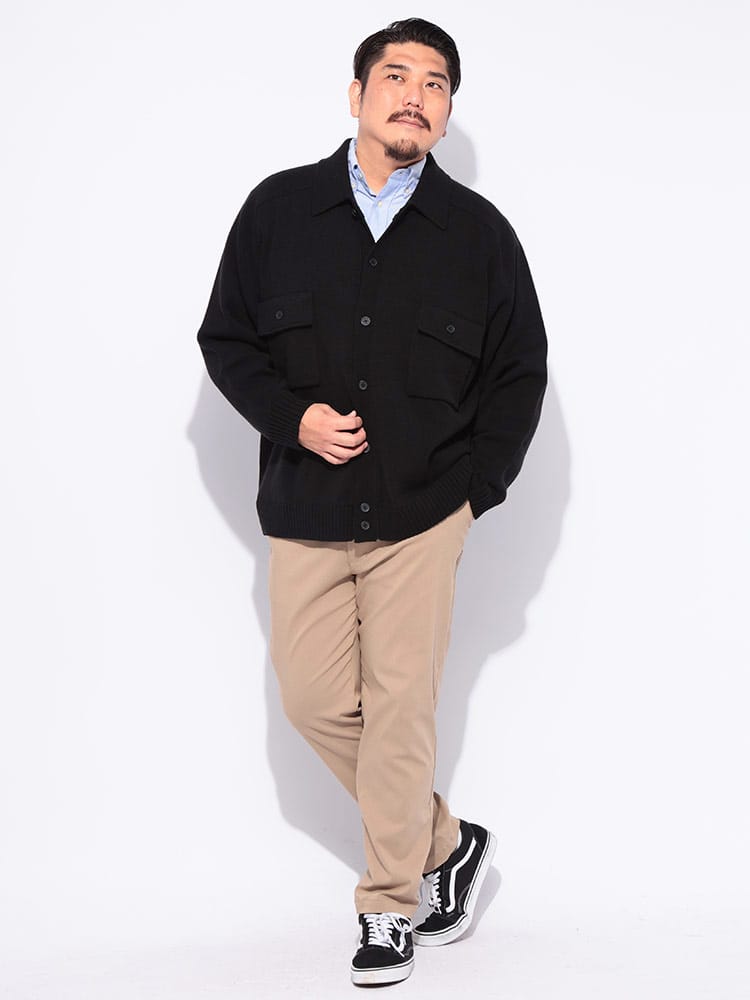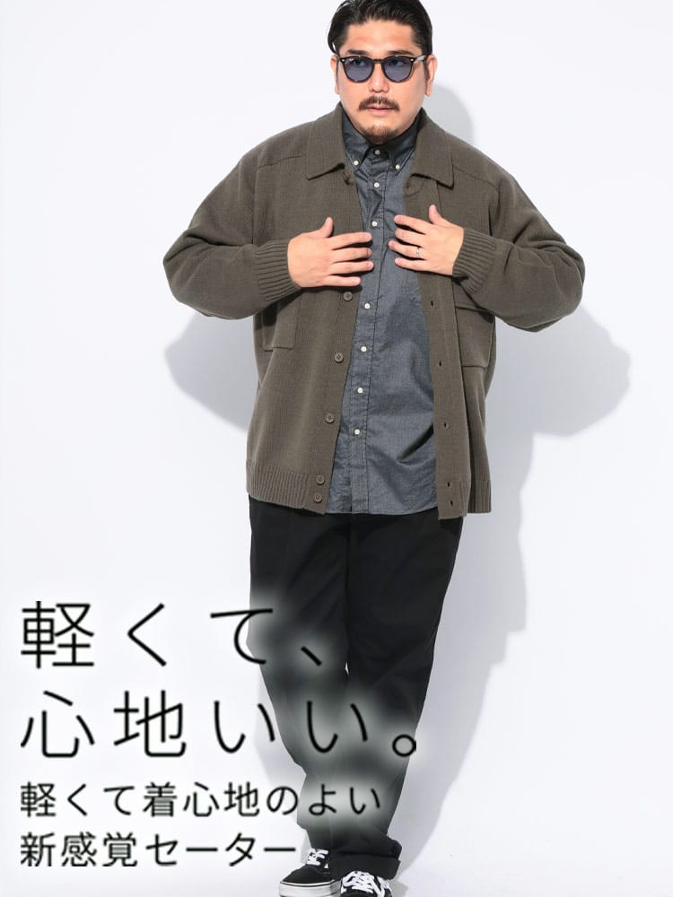 洗練された大人のための羽織り。肌寒くなる季節に、さっと羽織れる上品な一枚。 ウールを30%ブレンドしたアクリル素材は、暖かく柔らかな肌触りが魅力。ニット特有の伸縮性で、動きやすく快適な着心地を実現しました。まるでジャケットのようなきちんと感がありながら、カーディガン感覚で気軽に羽織れるのが嬉しいポイントです。外側には2つのポケットが付いているので、スマートフォンや鍵などの小物をスマートに収納できます。シンプルなボタンデザインと襟付きの仕様は、ビジネスシーンでのクールビズスタイルから、休日のきれいめカジュアルまで、幅広いコーディネートに対応。大きいサイズまで展開しているので、体格の良い方も安心です。