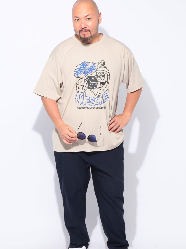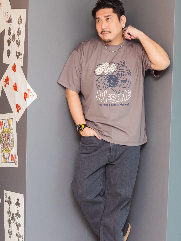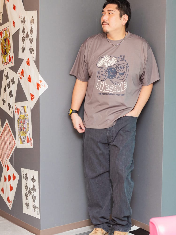 ゆったりとしたオーバーサイズシルエットで、トレンド感と着心地を両立。Tシャツ一枚で“サマ”になるデザインだから、大きいサイズのメンズカジュアルにもぴったりです。
