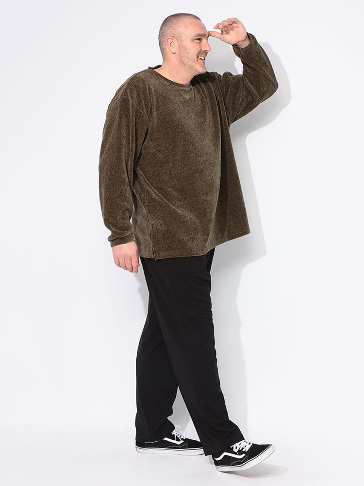 纏うだけで季節をまとう。PLEGGIから、秋・冬の装いを格上げする、楊柳風ベロアのクルーネック長袖Tシャツが登場です。表面の微細なシボ感が特徴的な楊柳(ようりゅう)風のテクスチャーに、温かみのある上質なベロア素材をブレンド。光沢を抑えたマットな起毛感は、Tシャツながらもブラウスのようなエレガントなムードを演出します。混紡素材が実現したのは、見た目の美しさだけではない、しなやかなストレッチ性と軽やかな着心地。大きいサイズのメンズにも嬉しい、ストレスフリーなトップスです。一枚着でサマになり、ジャケットやアウターのインナーとしても抜群の存在感。ロンTの気軽さで、着こなしに深みを与えてくれます。