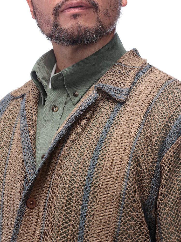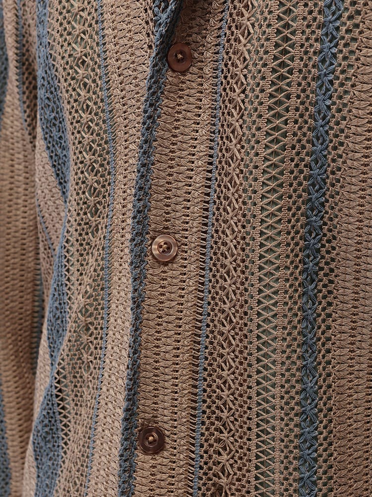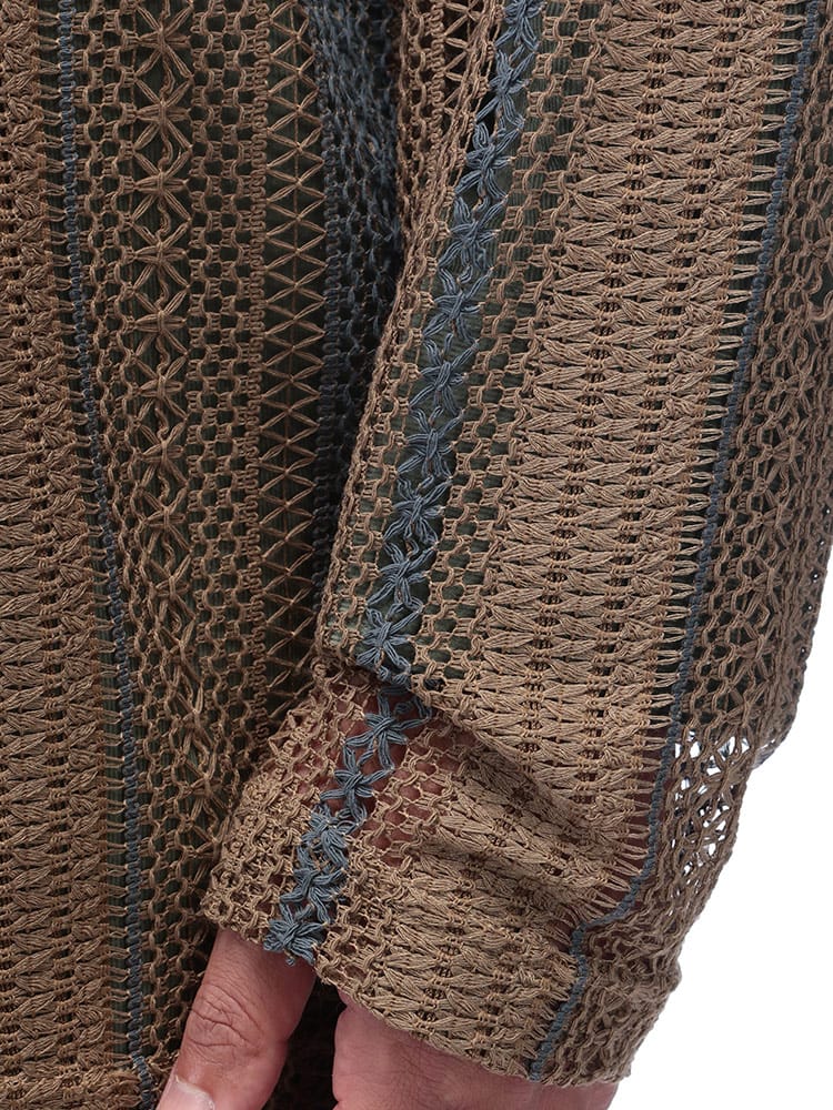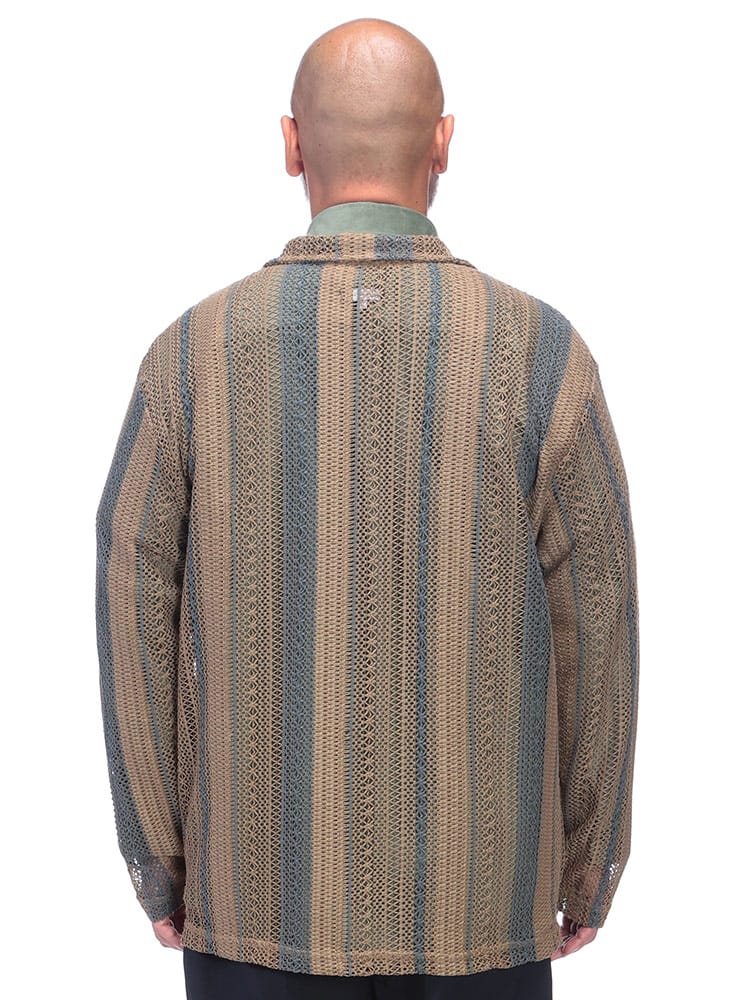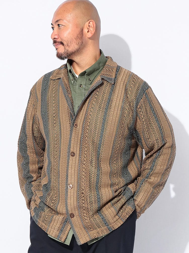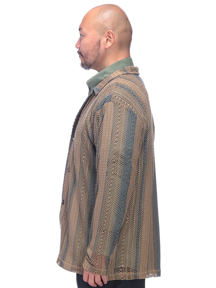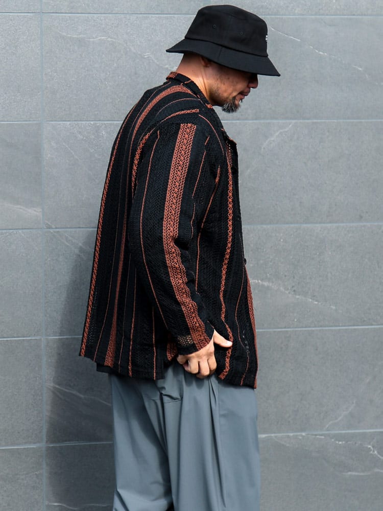 B&T CLUBのバルファレースストライプロングスリーブシャツ。繊細なバルファレース生地とストライプ柄が組み合わさり、上品ながらも程よい透け感で大人の魅力を引き出します。ポリエステルと綿の混紡素材で肌触りも良く、春から秋にかけて快適に着用いただけます。一枚で主役になる存在感で、周りと差をつけるおしゃれを楽しめる一着です。