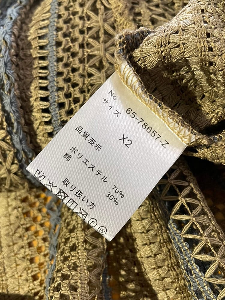 商品についている下げ札(タグ)に身長や胸囲などのサイズが記載されたものがございますが、そちらは「対応ヌードサイズ表記」となります。当店の商品ページに記載しております商品そのものを採寸した【実寸サイズ表記(仕上がり寸法】とは異なる表記となりますので、ご注意ください。