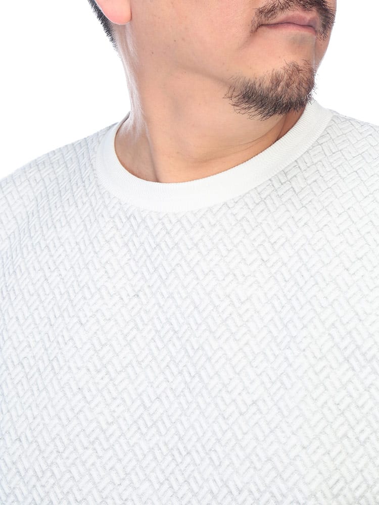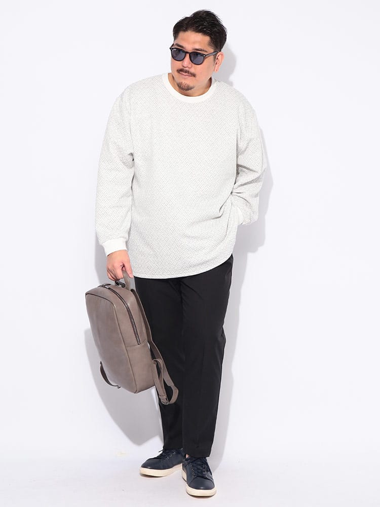 表面に凹凸のある独特な表情が魅力の、PLEGGIのフクレジャガード長袖Tシャツ。立体的な編み地が奥行きを生み出し、無地ながらも存在感のある洗練された佇まいに仕上げています。ゆったりとした大きいサイズ設計で、体のラインを拾いすぎずスマートなシルエットを演出。柔らかな質感と高いデザイン性を兼ね備え、一枚で着てもインナーとしても様になります。大人のカジュアルスタイルを豊かに彩る、こだわりの一着です。