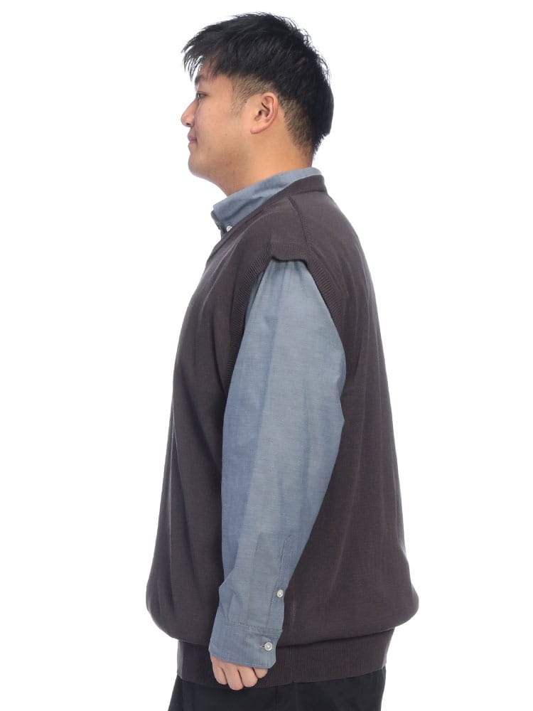「B&T CLUB」から、春夏シーズンに最適なVネックニットベストが登場。レーヨンにナイロンを混紡した12ゲージの天竺編みを採用し、麻のようなシャリ感のある「リネンライク」な肌触りを実現しました。吸湿性と清涼感に優れており、汗ばむ季節でもベタつきにくく、軽やかな着心地をキープします。無駄のないシンプルな無地デザインとスッキリとしたVネックは、Tシャツやシャツとのレイヤードスタイルに相性抜群。カジュアルからビジカジまで幅広く活躍します。ご家庭での手入れも簡単で、毎日のコーディネートに上品な大人っぽさをプラスしてくれる、汎用性の高い一枚です。