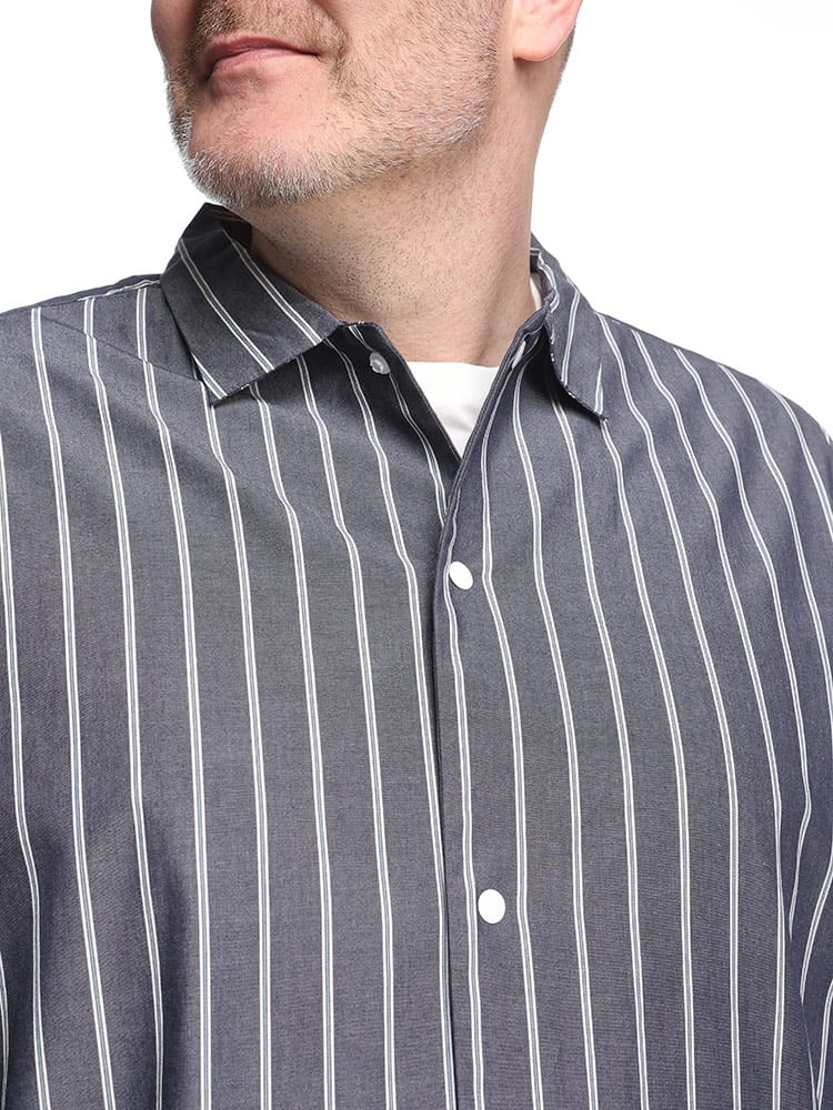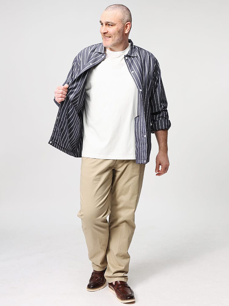 タイプライターストライプオーバーシャツは、スタイリッシュなデザインと機能性を兼ね備えています。スナップボタン採用で着脱が簡単で、忙しい朝でもストレスフリー。シャツブルゾンとしても使える汎用性の高さが魅力です。タイプライターストライプ柄が洗練された印象を与え、様々なスタイルにマッチします。快適な着心地と洗練されたルックスを両立した一枚です。
