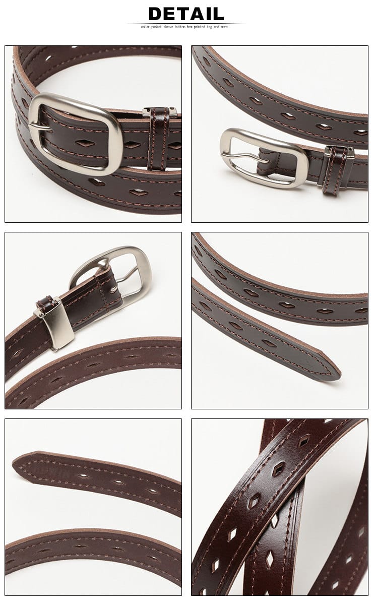 ダイヤの形をパンチングしたベルトです。使いやすい落ち着いたカラーリングが魅力的。コーディネートのさりげないアクセントとして活躍してくれるアイテムです。カジュアルスタイルにオススメ。