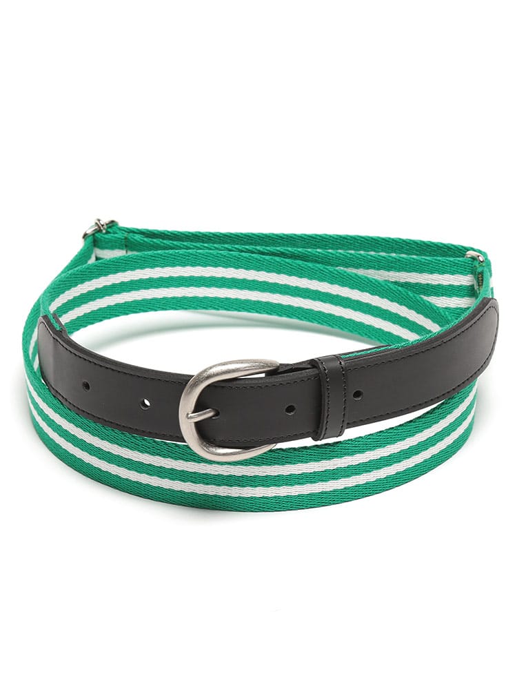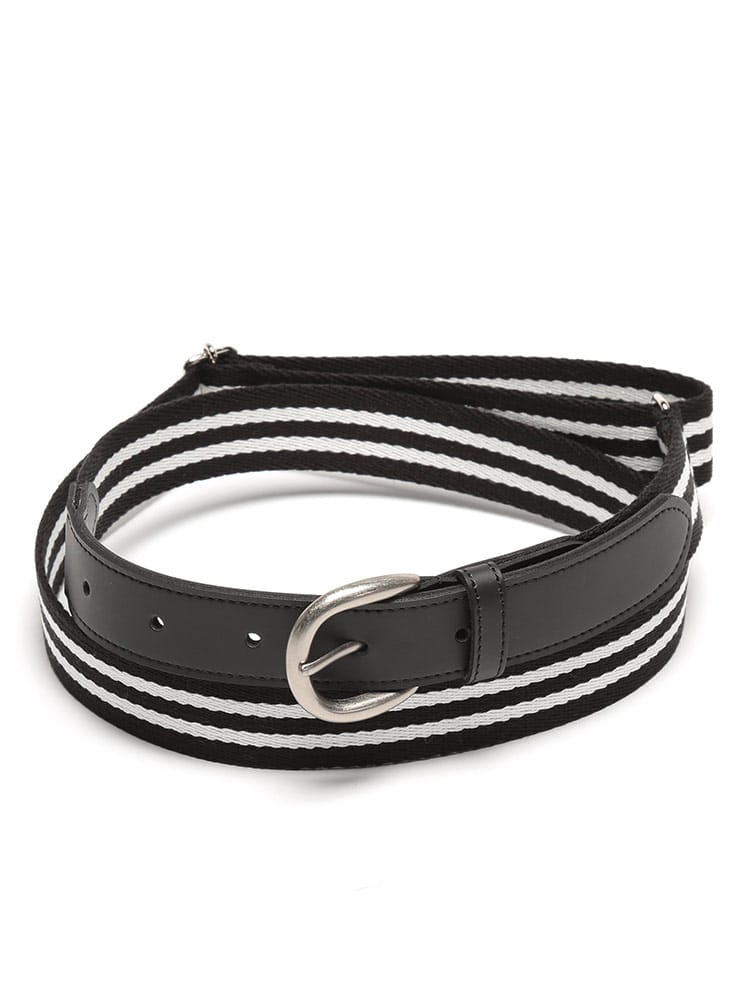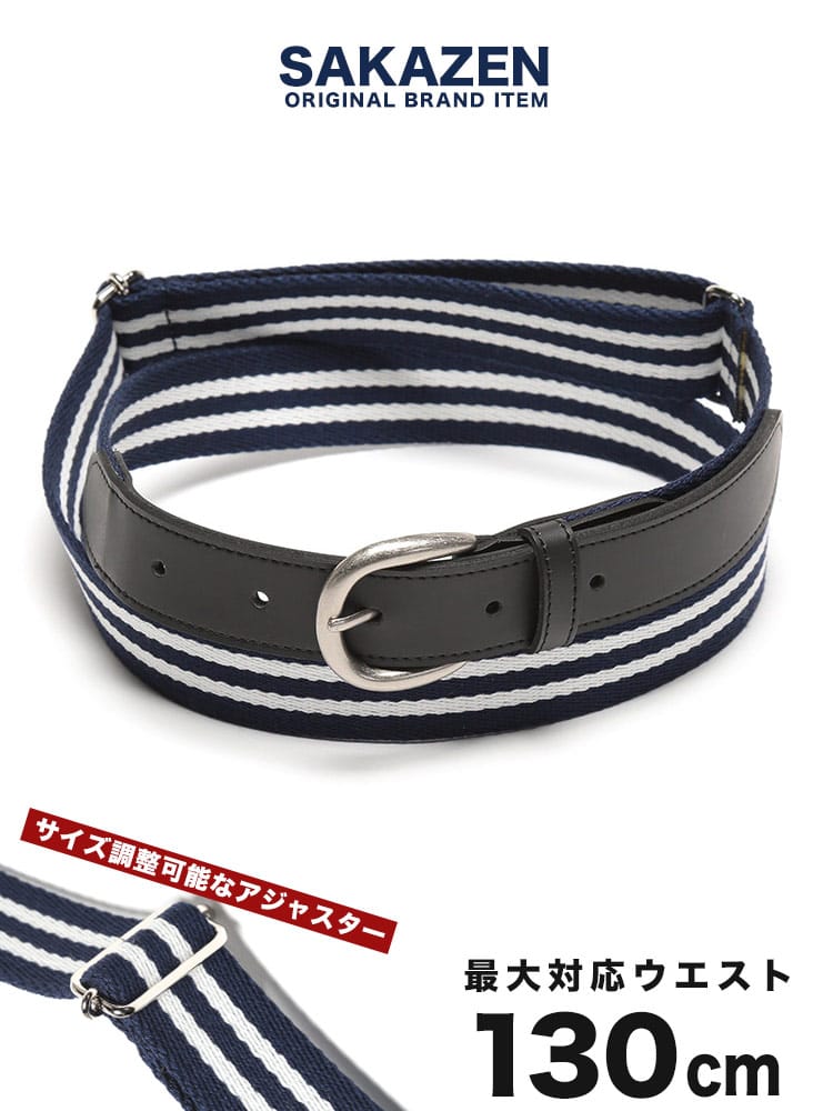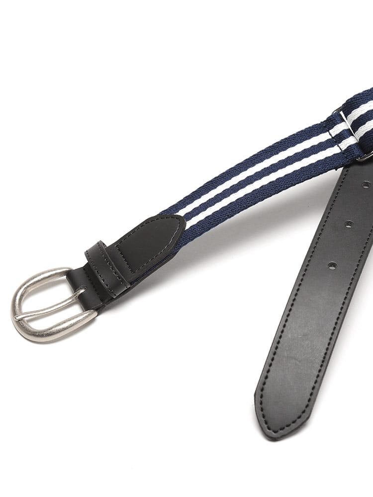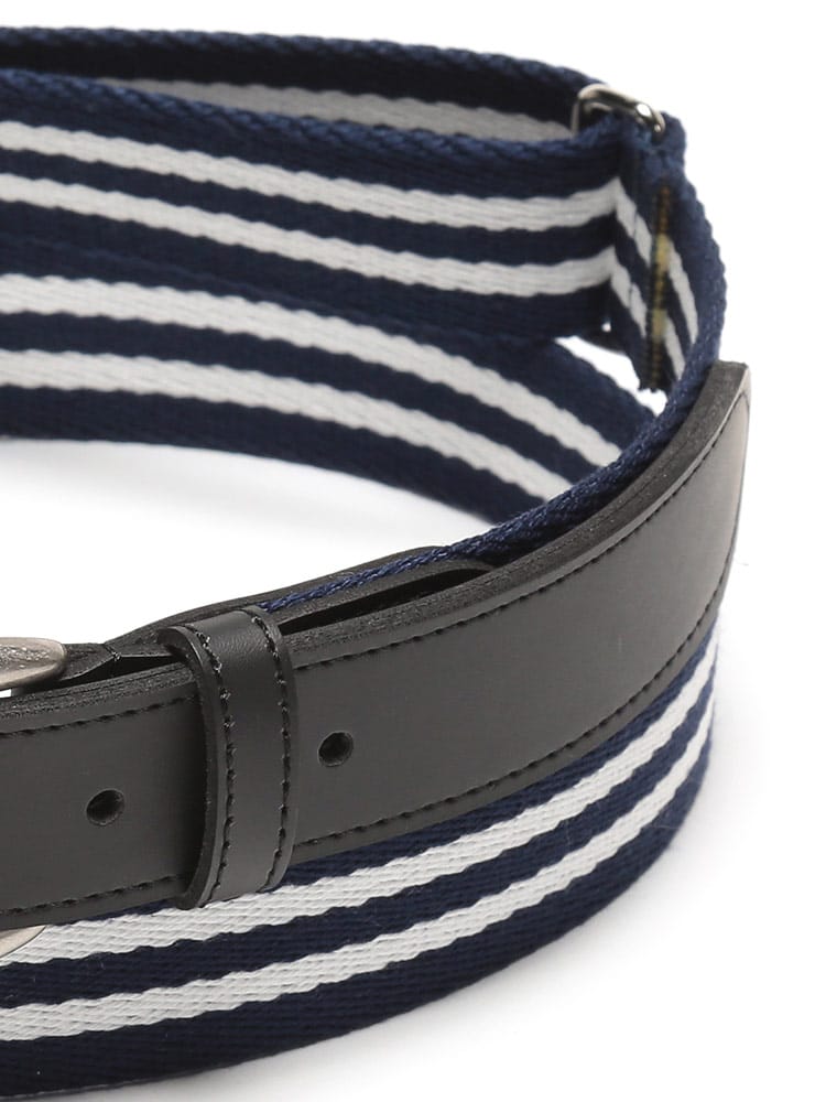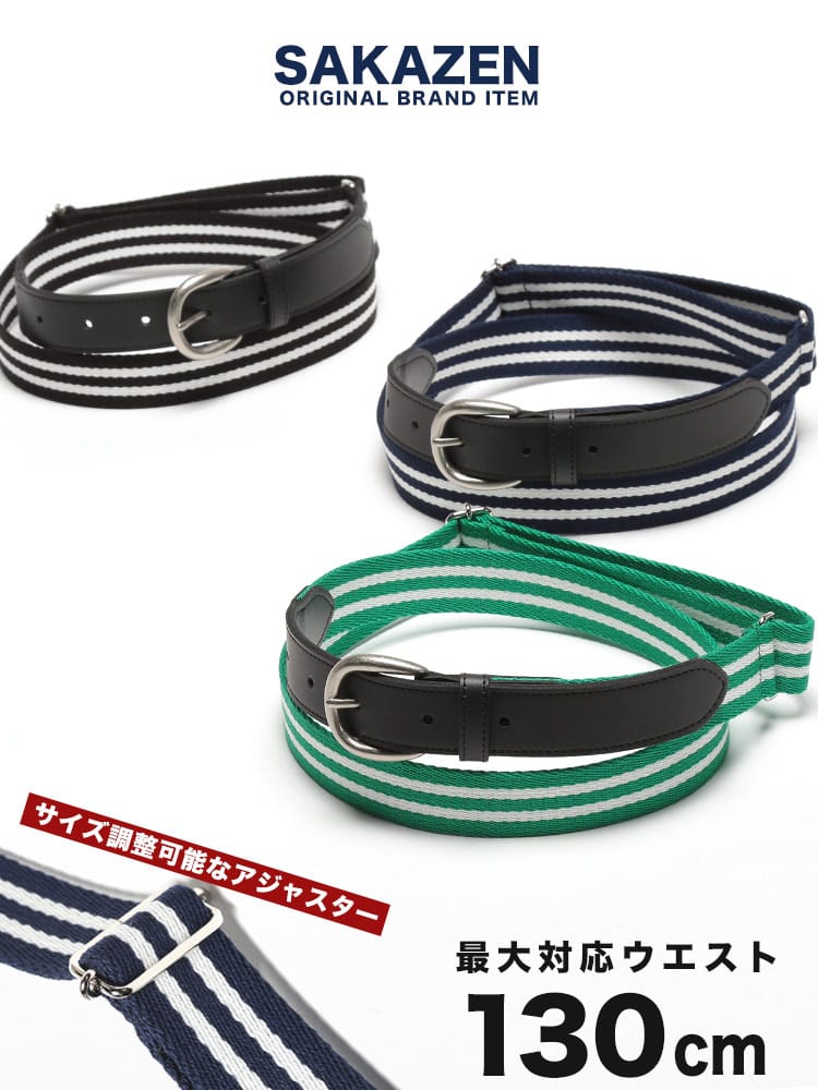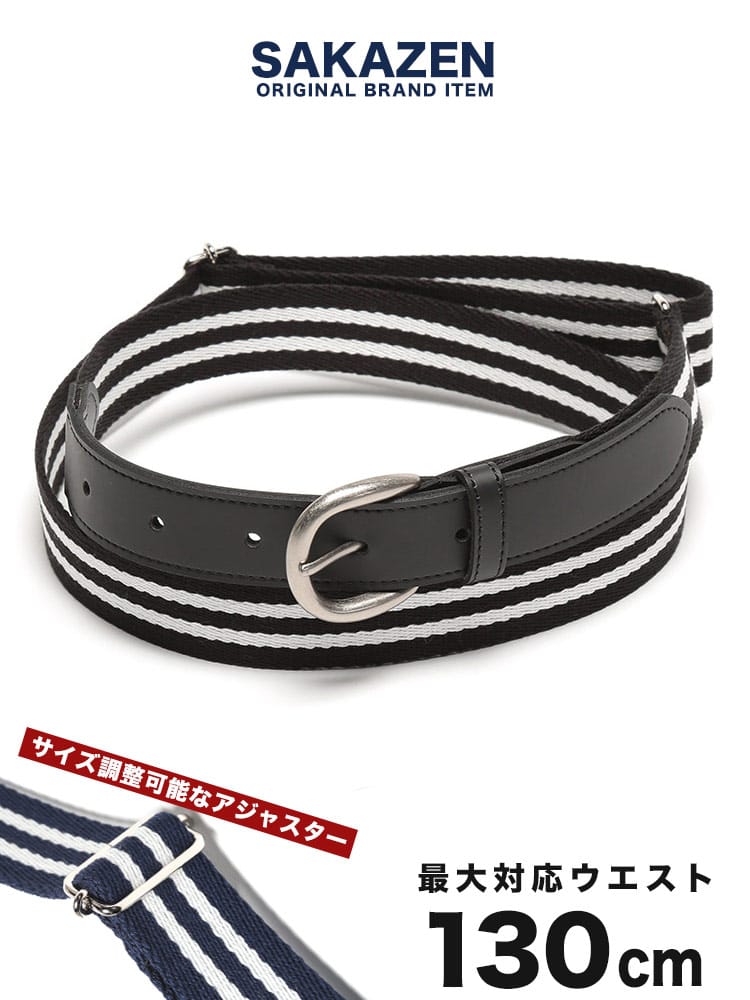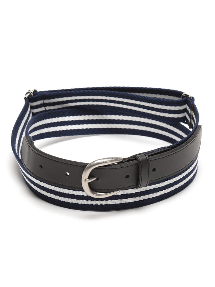 ボーダーデザインがコーデのアクセントになるアジャスター付き アイビーベルトです。アジャスターで長さを調整出来ます。部分使いで合皮を使用しています。カジュアルスタイルやストリートスタイルにマッチするアイテムです。