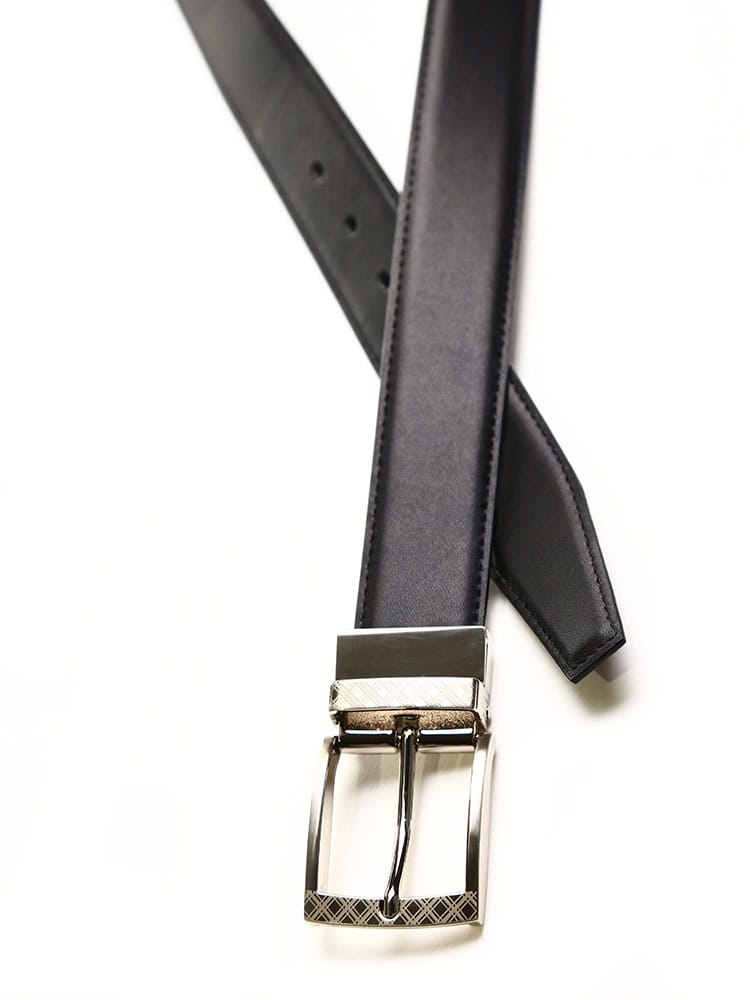 ストレッチ性があってフィット感抜群のHYBRIDBIZのリバーシブル ベルト。片面はチェック柄、もう片面は無地のリバーシブルデザイン。本革を使用した品のあるデザイン。かみ合わせ留めタイプでベルトの長さ調整が出来ます。上品なデザインでオフからオンまでどんなシーンにもお使いいただけます。
