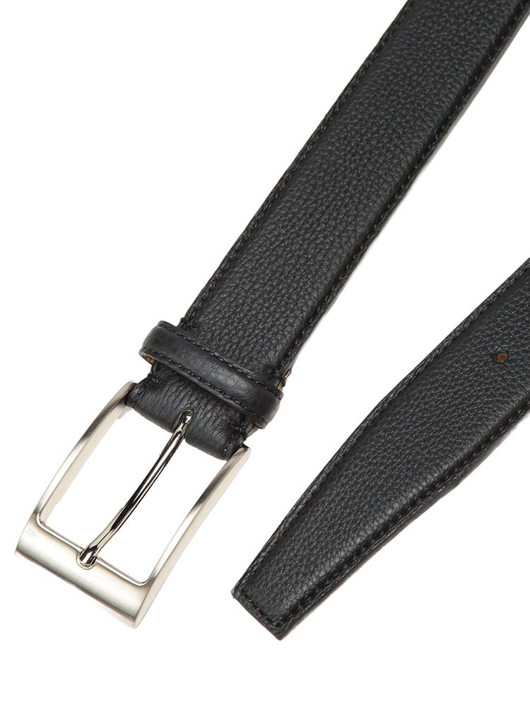 豊かな表情と風格、SAKAZEN シュリンク姫路レザーベルト。さりげなく、しかし確実に差をつける一本。SAKAZENの日本製ベルトは、上質な牛革本革にシュリンク(シボ)加工を施し、深みのある立体的な表情を実現しました。この柔らかなシボは、日本の名産地・姫路で丁寧に鞣されたレザーならではの美しさ。傷が目立ちにくく、日々のビジネスシーンで気兼ねなくご使用いただけます。革の質感を最大限に生かすため、あえて裁断せず仕上げたロングベルト仕様。大きいサイズにも対応し、腰元に確かな存在感と安定感をもたらします。ピンバックルのベーシックなデザインは、フォーマルからカジュアルダウンまで幅広く活躍。本物を知る大人の選択です。